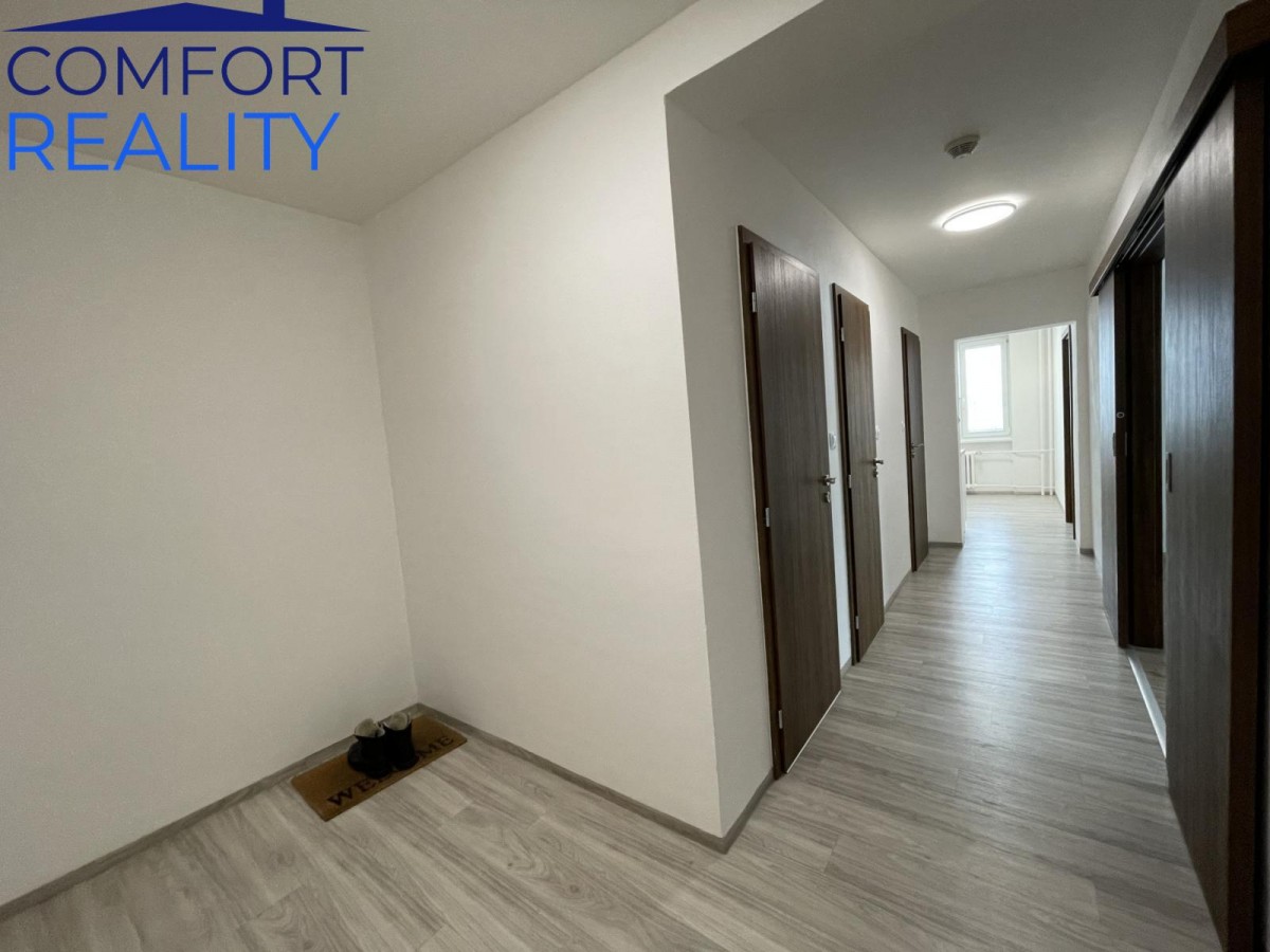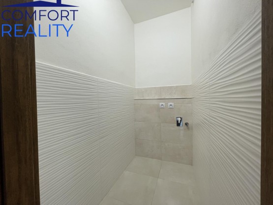 Samotný byt prošel v roce 2021 komplexní a vkusnou rekonstrukcí. V rámci modernizace došlo k výměně veškerých rozvodů vody, odpadů a elektroinstalace včetně nového rozvaděče. Byt disponuje novými štukovými omítkami, stropními SDK podhledy a novými interiérovými dveřmi. Promyšlené dispoziční řešení zahrnuje velkou vstupní předsíň a navazující chodbu, odkud jsou vstupy do praktické komory (lze umístit pračku, sušičku), koupelny, samostatného sociální zařízení WC, obývacího pokoje a kuchyně.