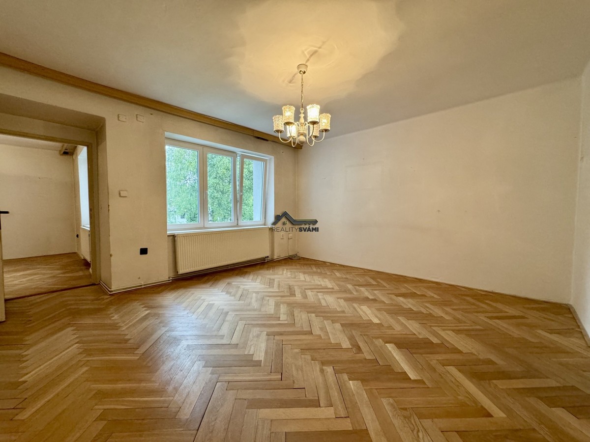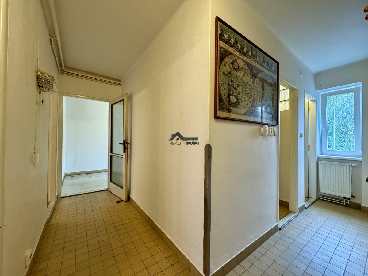 Byt. jednotka má 80 m2 podlahové plochy a je v původním, ud...ržovaném stavu. V bytě je samostatný plynový kotel, který se využívá k topení a ohřevu vody, Byt má jeden samostatný pokoj, jeden průchozí, přes který se dostaneme do posledního pokoje. Dále je v bytě kuchyně, kde je umístěný elektrický sporák, samostatné sociální zařízení WC s oknem a koupelna, kde je vana a je zde i denní světlo, díky umístěným světlíkům.