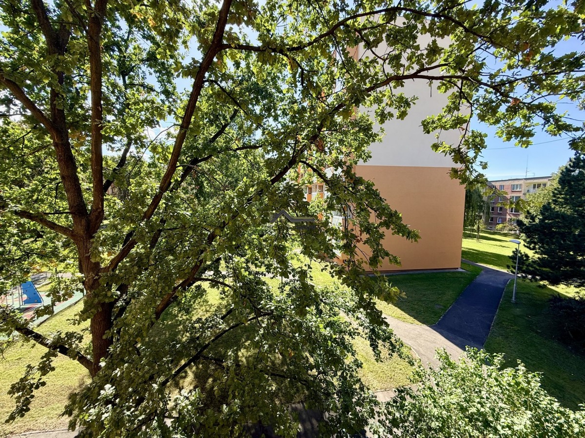 Lokalita je klidná. Lodžie má výhled na vnitřní dvůr, kde je malé dětské hřiště, dost stromů a zeleně. Přes ulici je školka a škola je také v dosahu. V blízkém dosahu je nemocnice, nebo autobusové spojení.