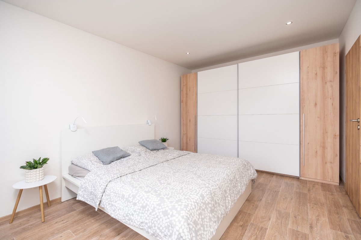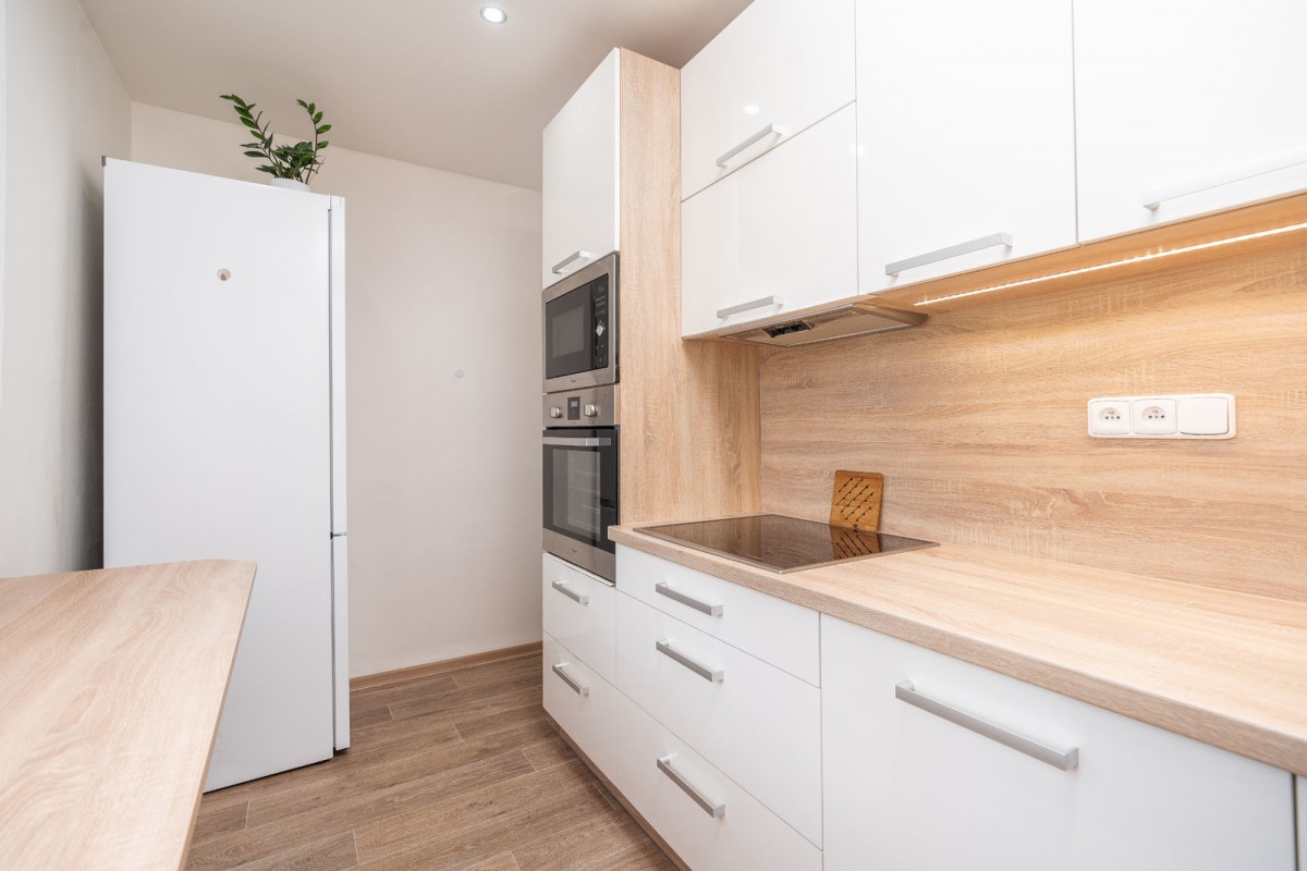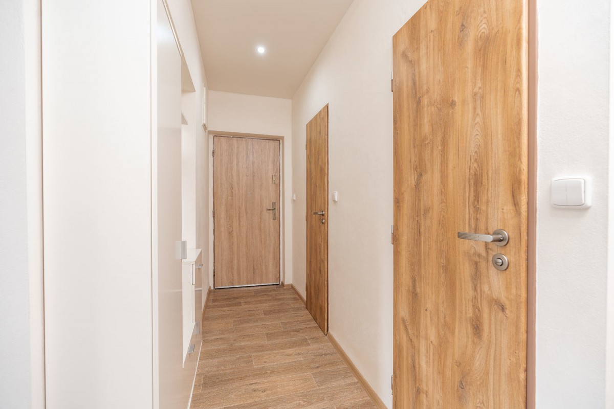 Samotný byt se nachází v prvním zvýšeném podlaží a v roce 2018 prošel rekonstrukcí, která zahrnovala nové rozvody vodoinstalace a elektroinstalace, novou kuchyňskou linku od firmy Monarc, novou koupelnu a podlahovou krytinu. Kuchyňská linka je vybavena vestavěnými spotřebiči jako je myčka zn. Bosh, varná deska zn. Mora a odsavač par, elektrická trouba, mikrovlnná trouba, vše zn. Whirlpool. V koupelně najdete sprchový kout s umyvadlem. sociální zařízení WC je v bytě samostatné. Z obývacího pokoje se dostanete na balkon, orientovaný západním směrem do zahrady s moc hezkým výhledem do okolí. Vytápění a ohřev vody v bytě zajišťuje vlastní plynový kondenzační kotel značky Baxi z roku 2018. Energetická náročnost budovy: třída D.