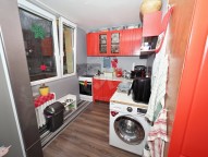 Kuchyně (10, 65 m2) ve tvaru písmene „L“ s osazenou novou kuchyňskou linkou a místem na jídelní stůl se židlemi, se spodními i horními skříňkami, místem pro lednici a pračku, osazenou volně stojícím elektrickým sporákem „Amica“ se sklokeramickou varnou deskou a s elektrickou troubou; ložnice (20, 85 m2 - 6, 04 krát 3, 45 m), obě místnosti jsou rovněž přístupné ze vstupní chodby s komorou a jsou orientovány na severní stranu.