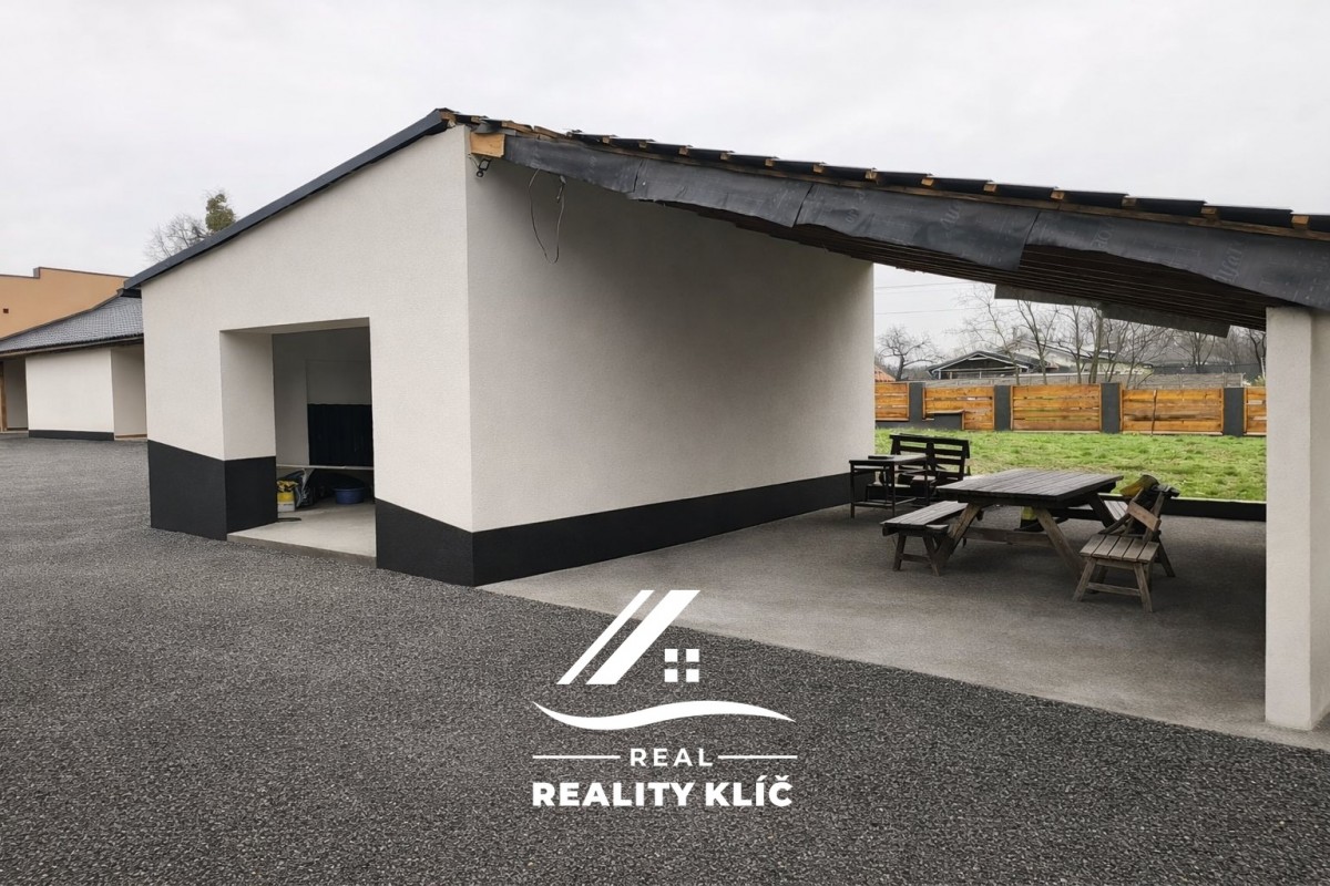 Součástí je také věcné břemeno jízdy a chůze po oddělené příjezdové cestě k domu, což zajišťuje pohodlný přístup i parkování. K nemovitosti náleží rovněž zateplená garáž s výsuvnými vraty o výměře 47 m² a přístřešek umožňující parkování dvou a více automobilů.