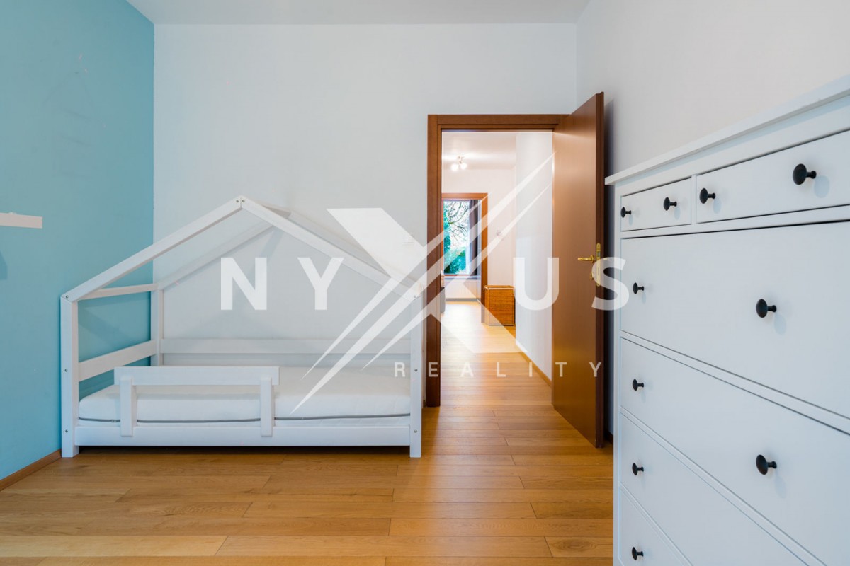 Jednotka o celkové ploše 100 m2 sestává ze dvou chodeb, koupelny s sociální zařízení WC, samostatného sociální zařízení WC, komory (šatny), dvou pokojů, prostorného obývacího pokoje s kuchyňským koutem a terasy. Ze všech pokojů vede vstup francouzskými okny na jednu z předzahrádek - větší 48, 7 m2, menší 8, 5 m2.
