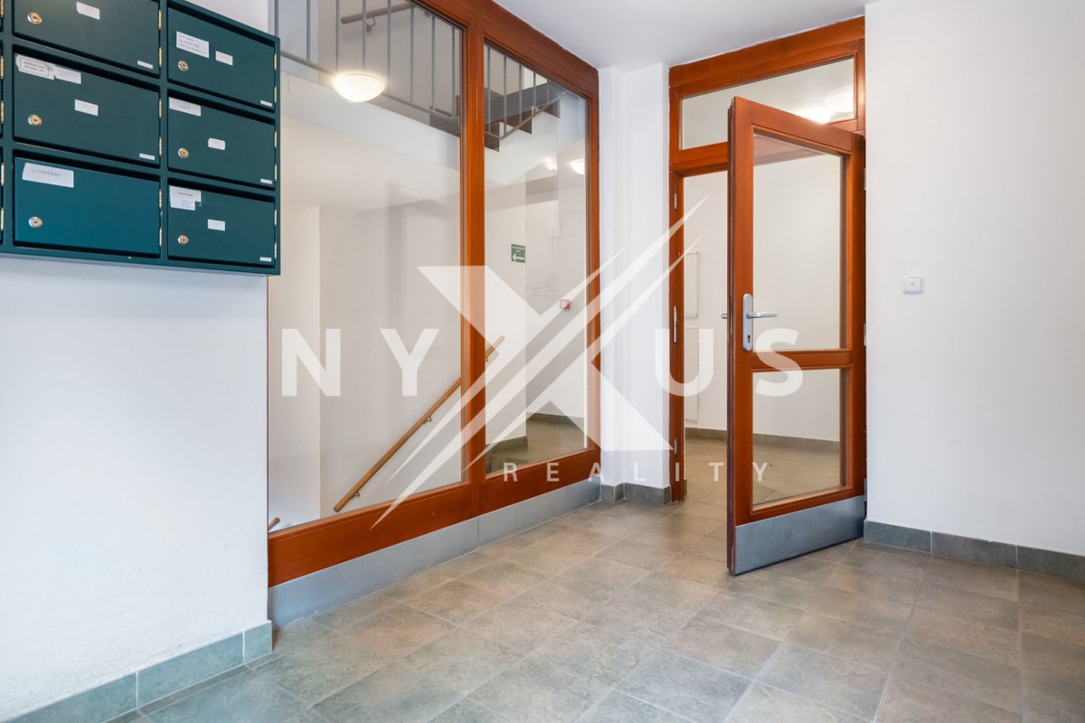 K bytu náleží dvě garážová stání a dva sklepy přímo v domě - přístupné po schodech nebo výtahem.