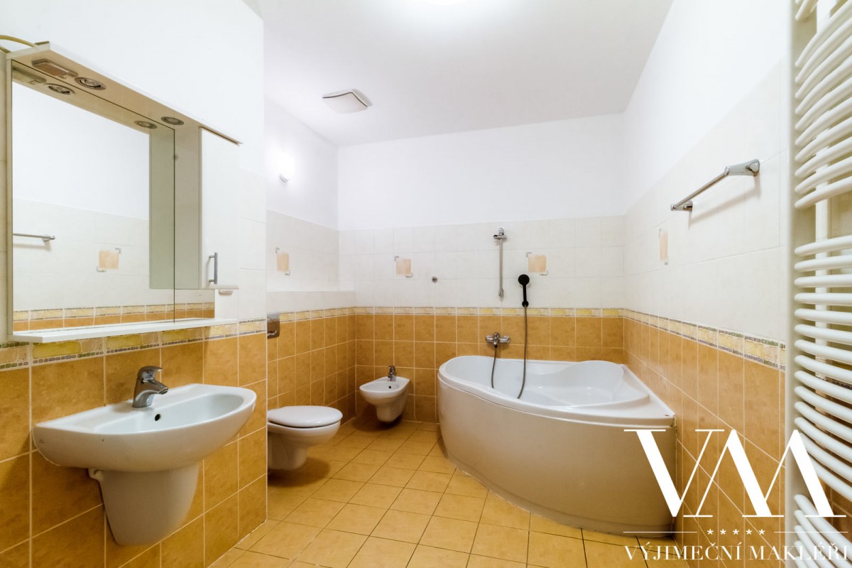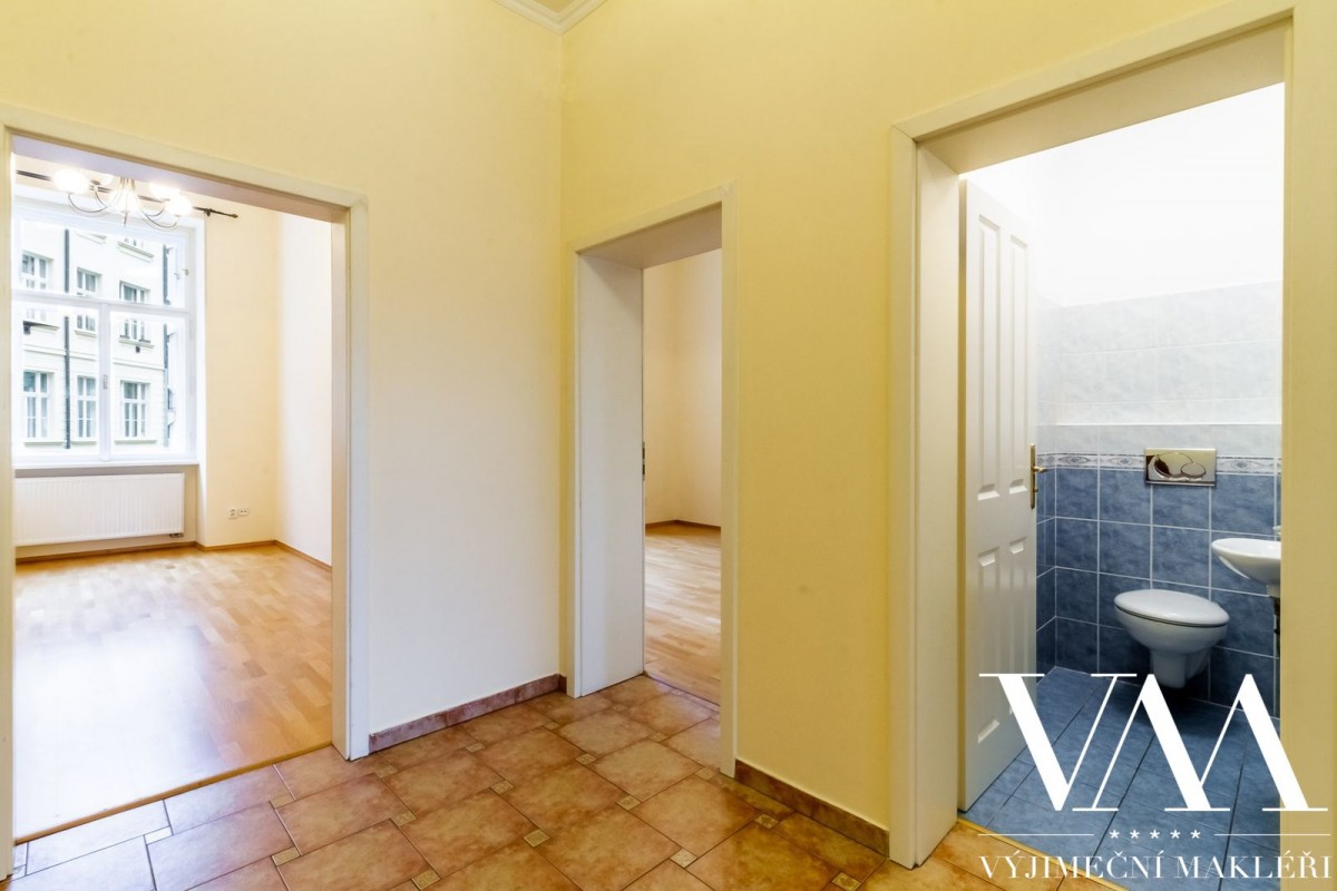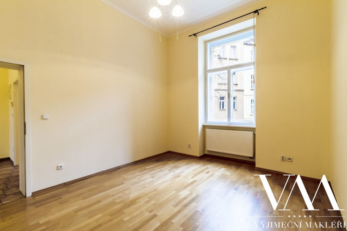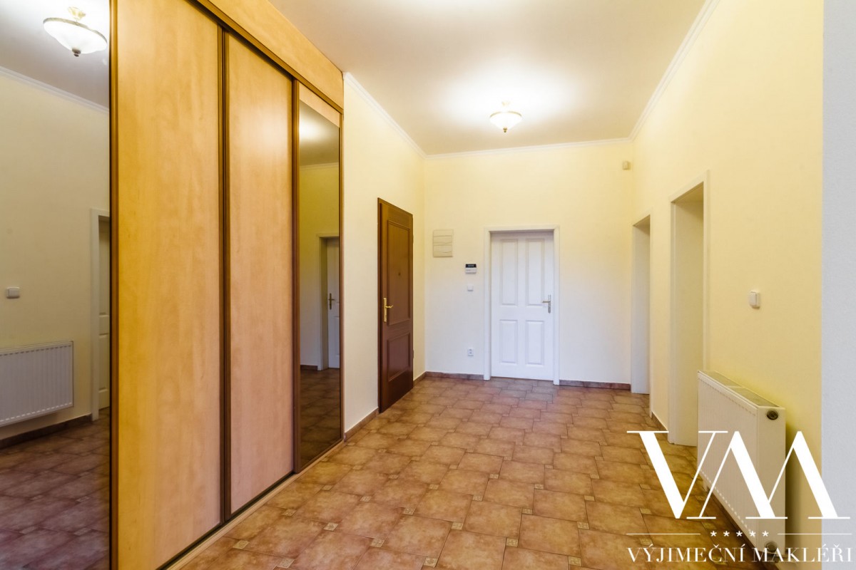 Byt se nachází v 1. patře cihlového domu včetně výtahu, z celkového počtu 5ti pater. Prvorepublikový, secesní dům prošel v roce 2005 kompletní a kvalitní rekonstrukcí (zrestaurovaná fasáda, nové stoupačky (vertikální svody), el. rozvody, nový moderní výtah, vstupní dveře na čip). Byt disponuje velkou prostornou chodbou, dvěma oddělenými pokoji, které mají výhled do klidného vnitrobloku, světlým obývacím pokojem se vstupem na balkón s možností posezení a úžasným, uklidňujícím výhledem na panorama Prahy, dále dvěma oddělenými pokoji, které mají výhled do klidného vnitrobloku. Z předsíně je vstup i do prostorné samostatné koupelny a sociální zařízení WC. Stropy jsou vysoké 4, 5 m. Interiér lze přetvořit na velice luxusní, elegantní a reprezentativní prostor s důrazem na design, který splňuje nejvyšší nároky na komfortní a kvalitní bydlení.