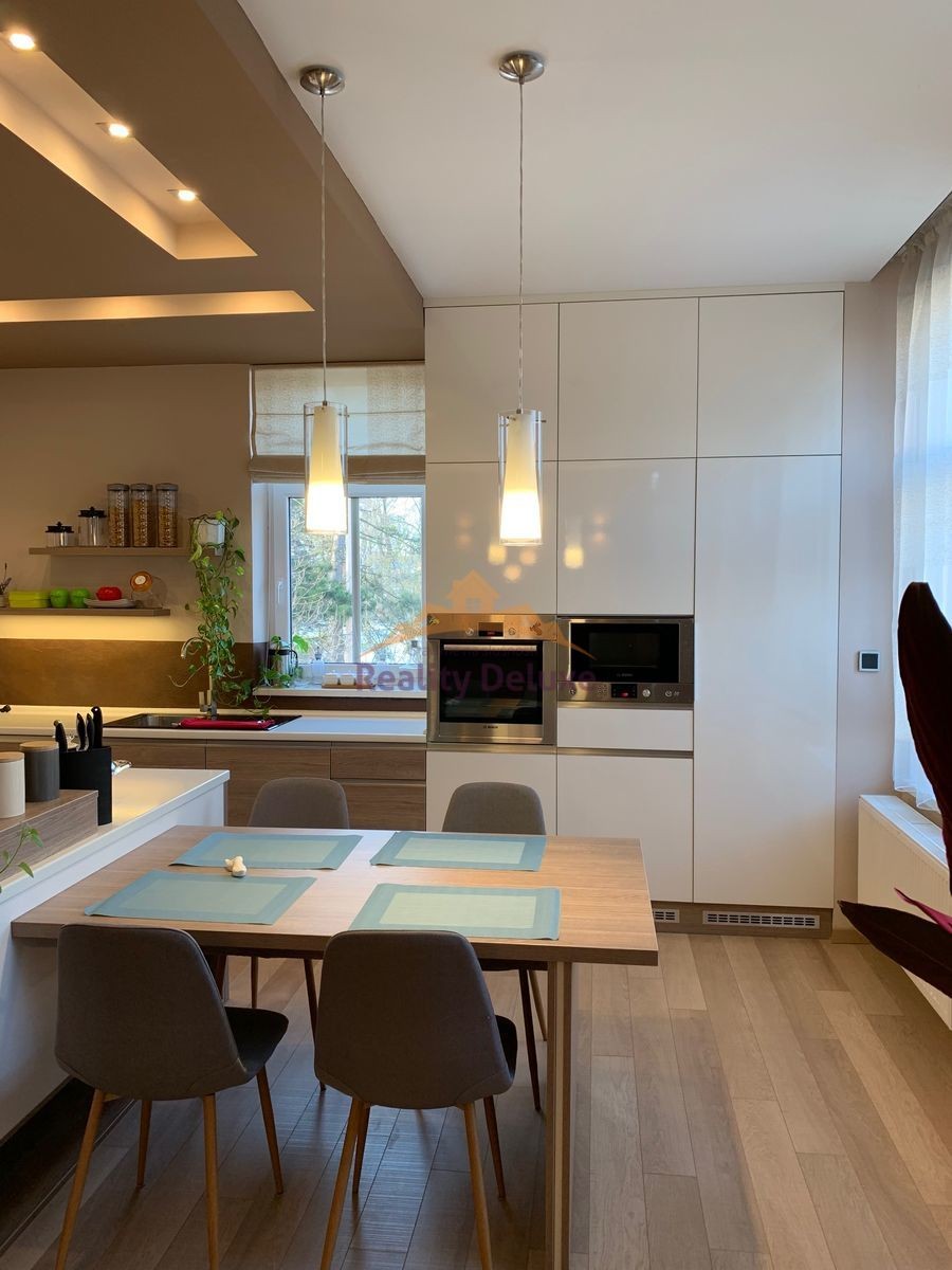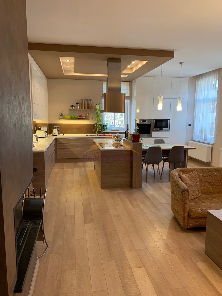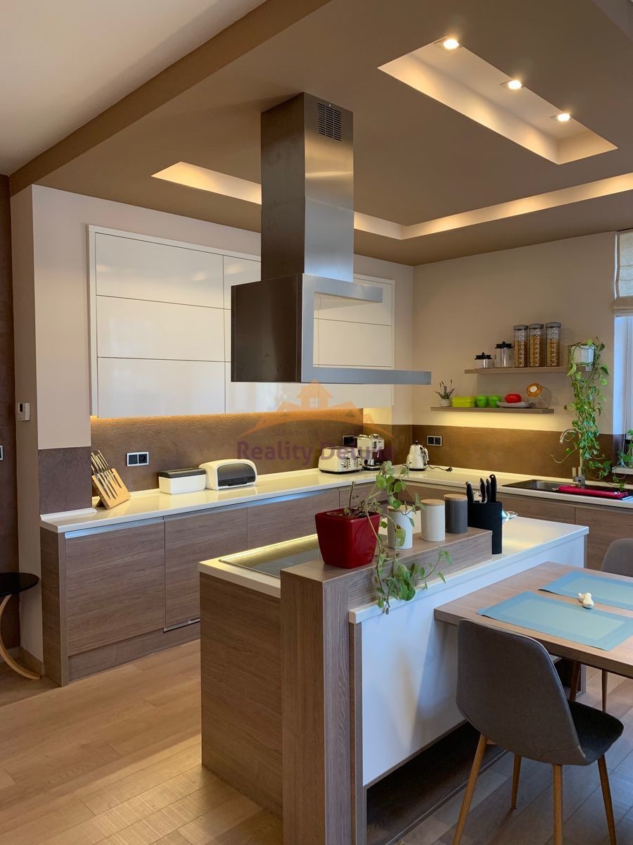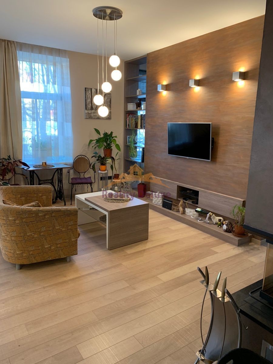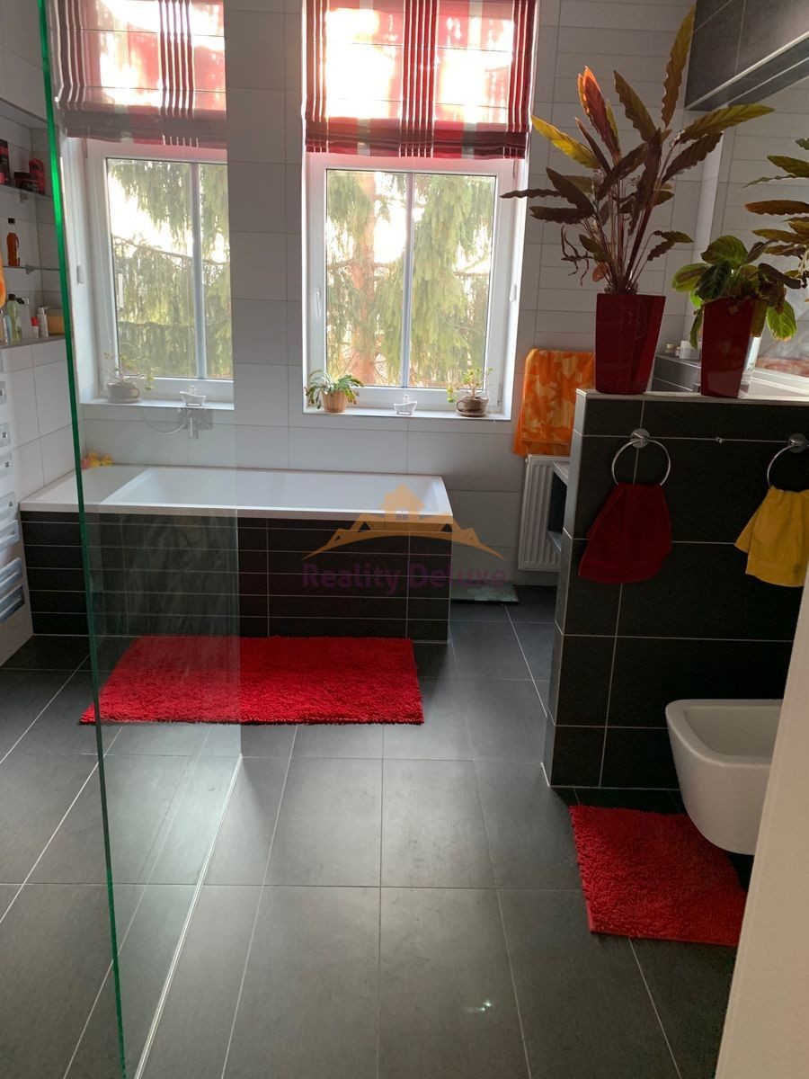 Ve výhradním zastoupení vám nabízíme prodej bytové jednotky s vetšinovým podílem na domu se zahradou. Jednotka prošla velmi nákladnou rekonstrukcí. Dispozice 3+kk, 102 m2... s projektem na dobudování mezonetu v podkroví o velikosti 60m2. V bytě a domě nová voda, elektřina, plyn včetně plynového vytápění. Moderní kuchyňská linka na zakázku s vestavěnými spotřebiči BOSCH, obývací pokoj s krbem, dětský pokoj. V ložnici vestavěné skříně. Koupelna s vanou i srchovým koutem. Technická místnost. Na podlaze dřevěné podlahy, na stěnách benátský štuk, dveře BETYS, snížené podhledy s bodovými světly. Okna plastová, střešní krytina z plechu a nově vyvložkovaný komín. V 1. PP prostorný sklep. Na zahradě studna. V těsné blízkosti autobusové a vlakové nádraží, lékařský dům, škola, školka. Náklady na bydlení 3 400, - Kč. Do budoucna je nutná oprava střechy. Rozpočet na střechu vyhotoven na 380 000, - Kč, který se dělí podíly. Výhodné financování zajistíme.