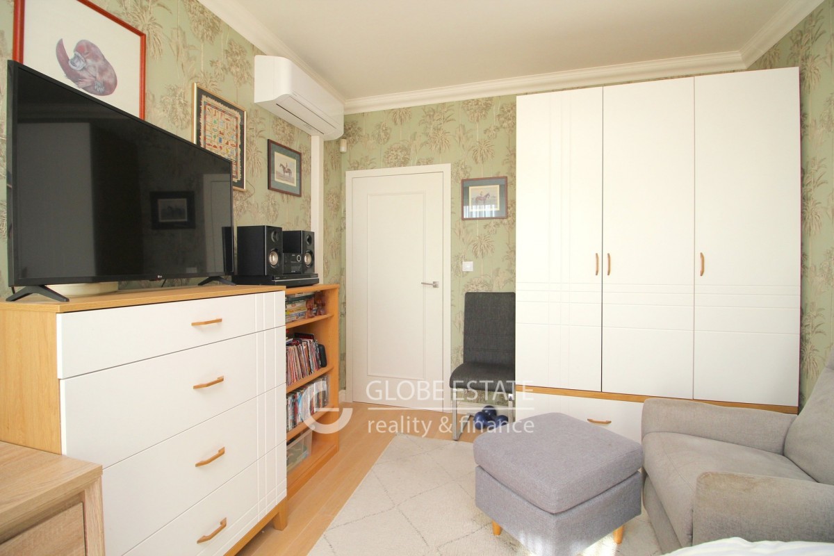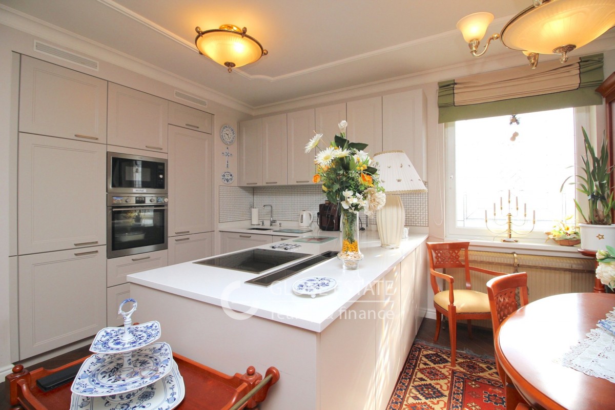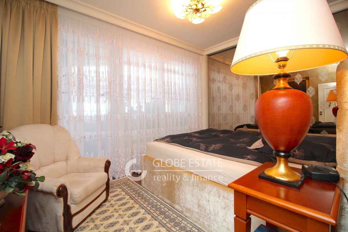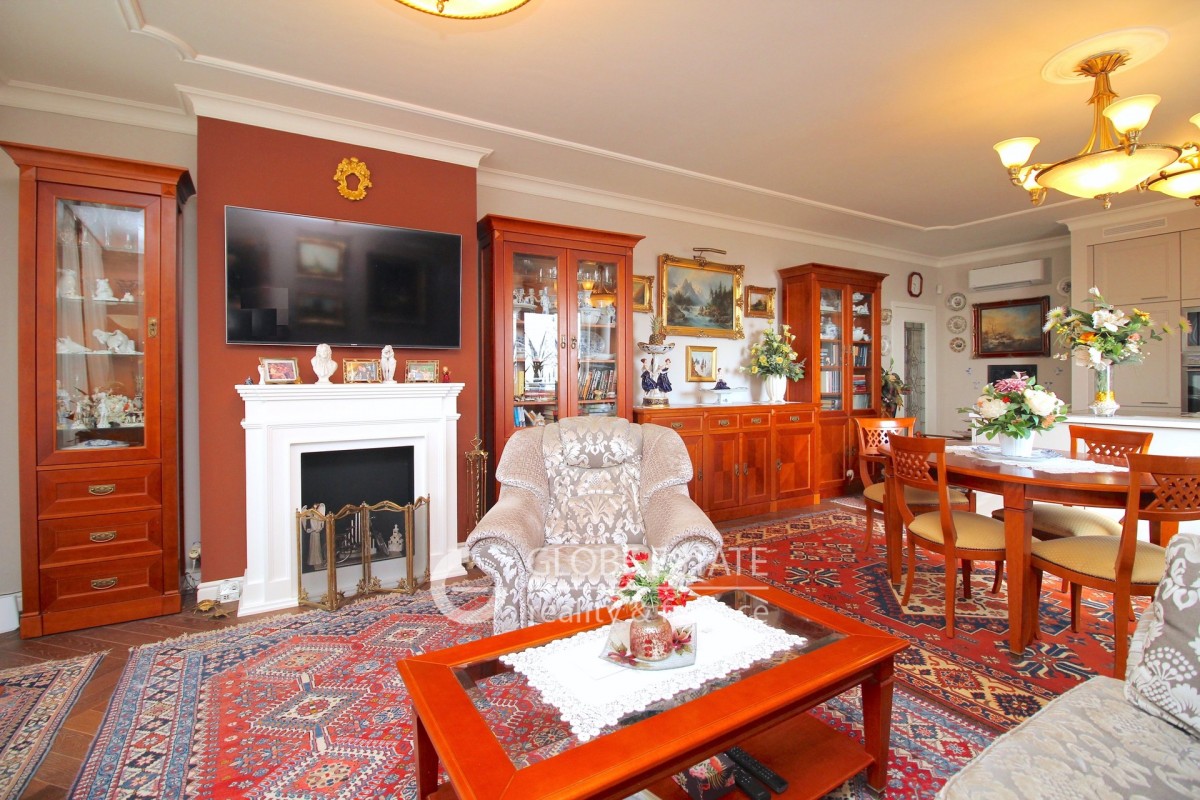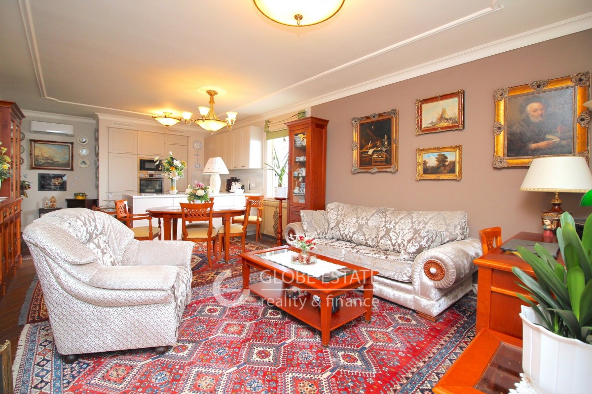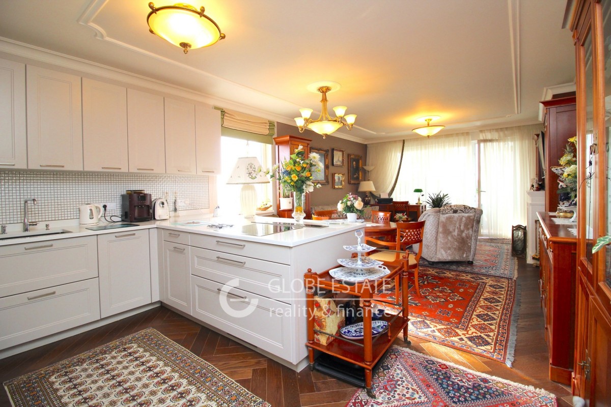 Byt prošel během několika let důkladnou modernizací, která zahrnovala položení dubové podlahy z parket, kvalitní dveře značky Sapeli a kuchyňskou linku Bauformat s pracovní deskou z Technistone a spotřebiči značek AEG a Siemens. Obývací pokoj je ozdoben krbem na biolíh a dvěma unikátními vitrážemi, které byly vyrobeny na zakázku, přičemž jedna z nich je umístěna v okně a druhá ve dveřích do obývacího pokoje. Pod oknem s vitráží se nachází stylové zakrytí na radiátor, který dodává interiéru jedinečný charakter.