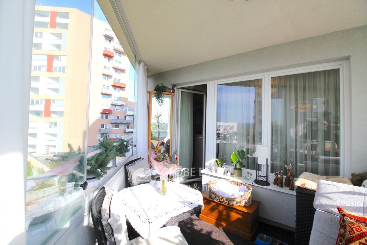Tento byt (90, 2 m2) je vybaven dvěma prostornými lodžiemi o celkové ploše 20, 2 m2 a balkónem o velikosti 4, 4 m2, které zajišťují dokonalé propojení interiéru s exteriérem.