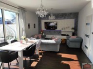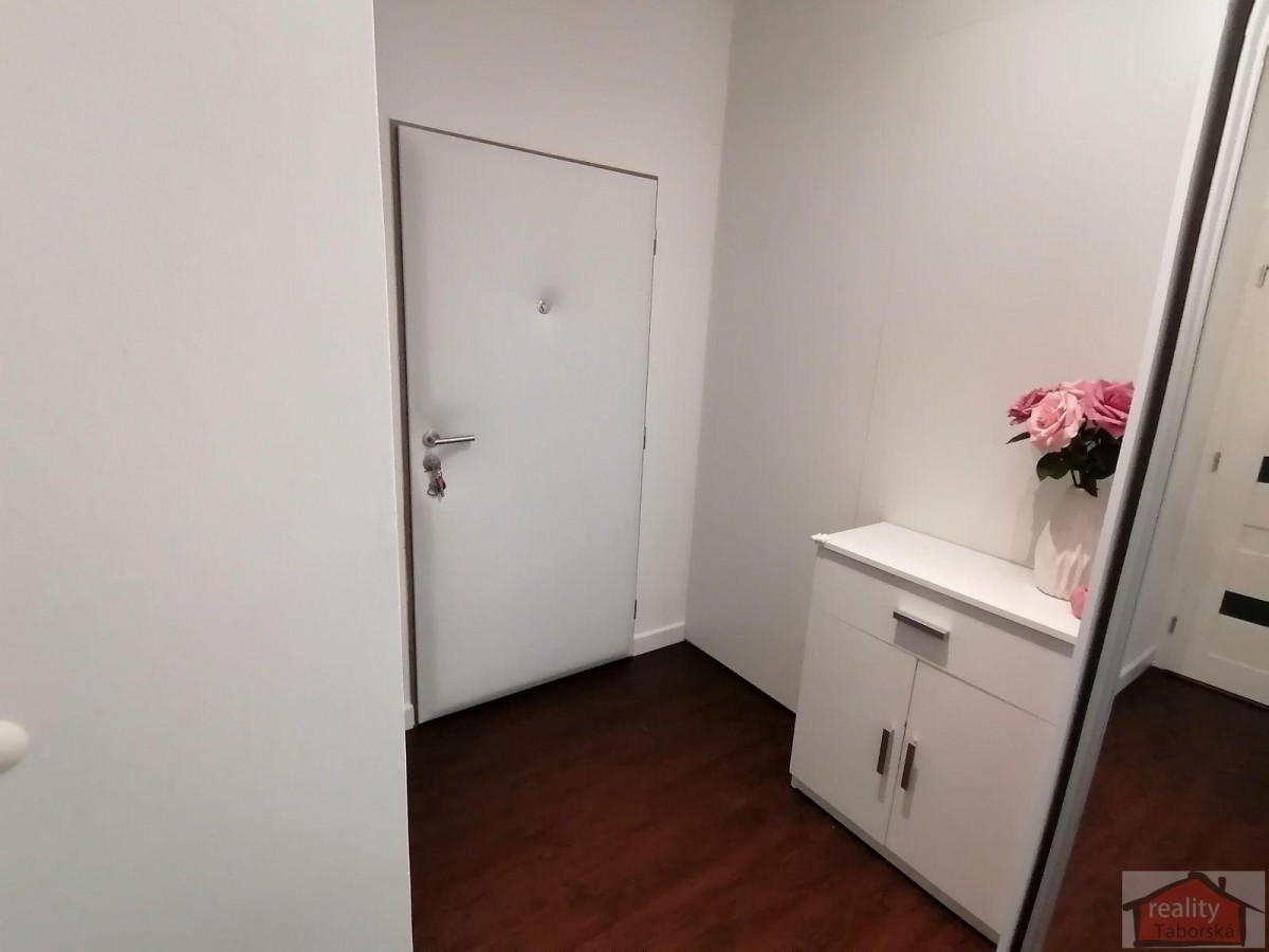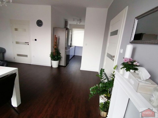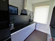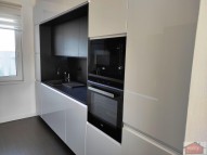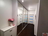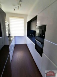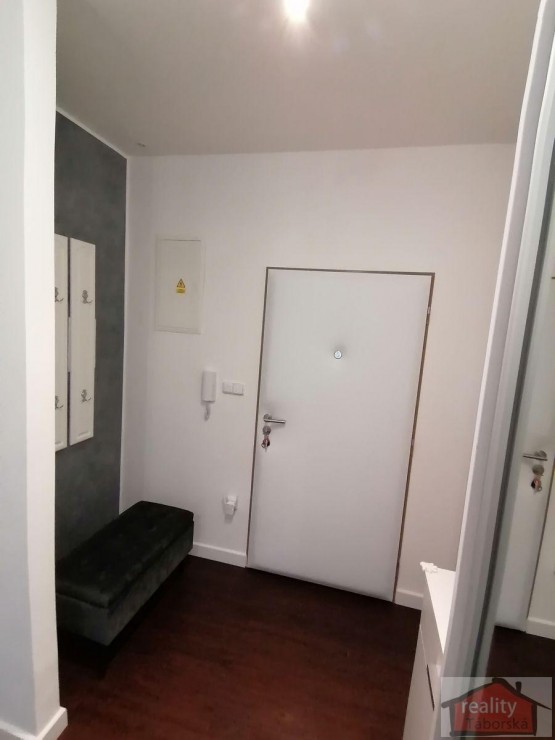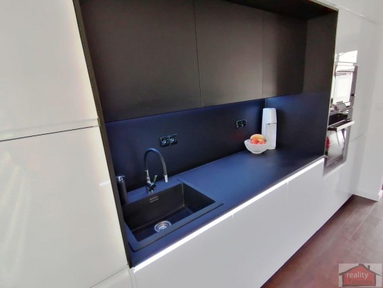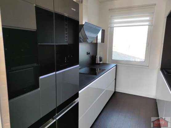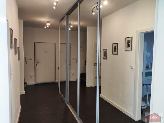 V bytě se nachází vstupní prostor (12, 3 m2) s velkou vestavěnou zrcadlovou skříní, obývací pokoj (25, 88 m2) s přímým vstupem na terasu se zahrádkou (32 m2), který je propojený s kuchyňským koutem (8, 45 m2). V kuchyňské lince jsou zabudovány spotřebiče (indukční deska, trouba, digestoř, mikrovlnná trouba, myčka nádobí a kombinovaná americká lednice).