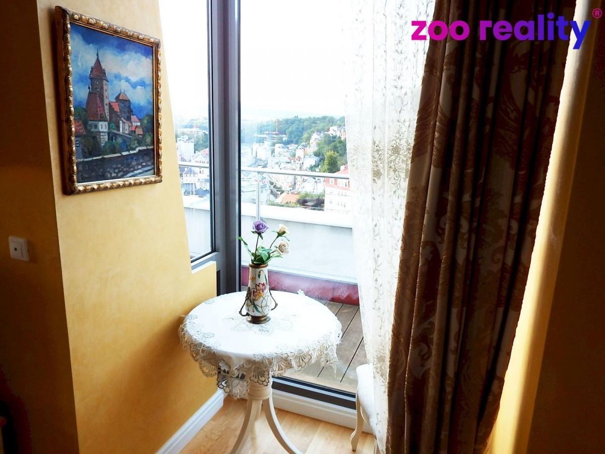 Byt je kompletně zařízený a vybavený. Lukrativní vyhlídka z bytu na Mlýnskou kolonádu, Karlovy Vary a Krušné hory.