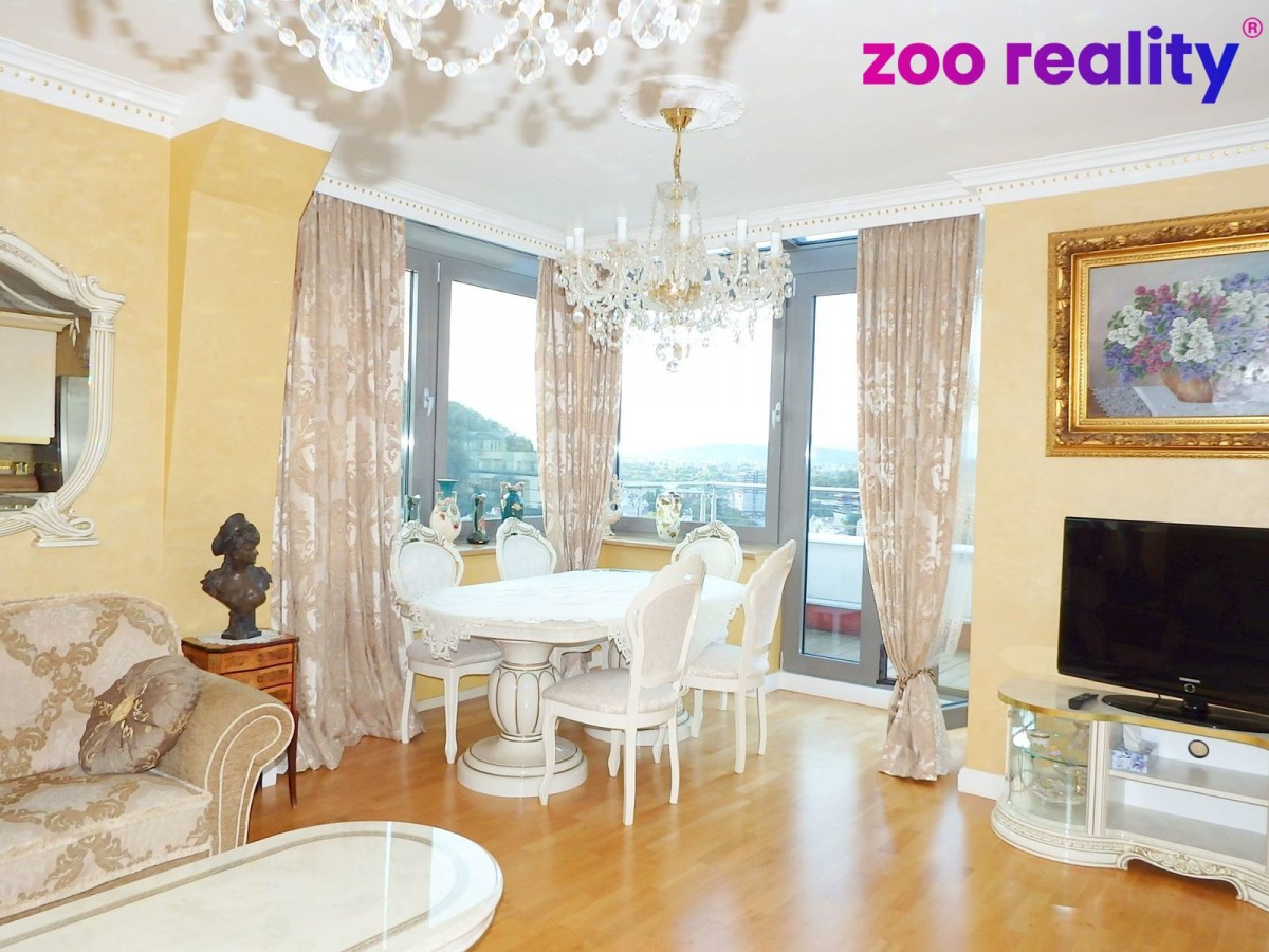 Prodej prostorného bytu 3+kk o podlahové ploše 104m2, s terasou 16m2, sklepem a se dvěma garážovými stáními. Byt se nachází v pátém nadzemním podlaží dom...u včetně výtahu, na patře je jenom jeden byt. Rezidence Královská Vyhlídka byl dokončen v roce 2010 jako moderní bytový bezbariérový komplex.