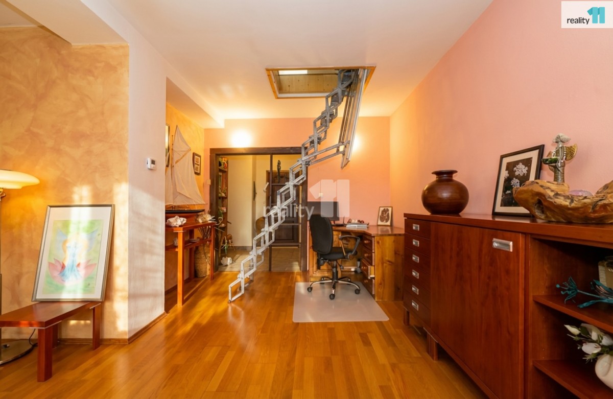 oddělené sociální zařízení WC. Unikátním prvkem je mezonetové patro, které se díky své atmosféře nabízí jako inspirativní pracovna,