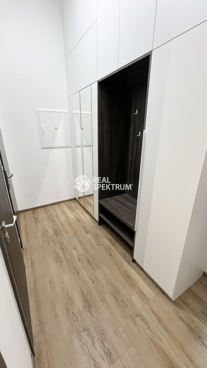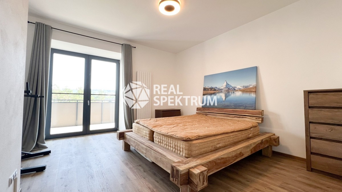 Byt nabízí nadstandardní interiér, který poskytuje veškerý komfort. Dominantou obývacího pokoje je špičková kuchyně od firmy Sýkora, vybavená spotřebiči Miele, AEG a Liebherr, a bohaté prosklení, které dodává prostoru jedinečnou atmosféru. Vstupní prostor je navržen tak, aby poskytoval dostatek úložných možností. Dále byt zahrnuje dvě ložnice, dvě koupelny a dvě toalety. Vytápění je zajištěno teplovodním podlahovým systémem kombinovaným s deskovými radiátory, napájenými plynovou kotelnou v domě. Klimatizace je k dispozici pro maximální pohodlí i v letních měsících.
