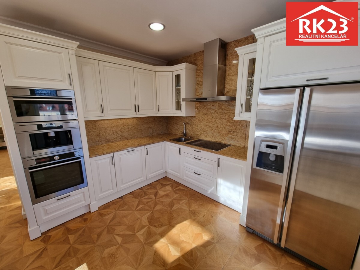 Prodej nadstandardního bytu 3+kk s lodžií o podlahové ploše 160 m², který se nachází ve 4. patře bytového domu včetně výtahu v Mariánských Lázních na ul. Bezejmenná. Byt je r...ozprostřen jako jediný na celém patře, působí prostorným a světlým dojmem. V přední části se nachází rozlehlý pokoj s lodžií, kuchyňský kout a toaleta s technickým zázemím. V zadní, soukromé části bytu jsou umístěny dva pokoje a prostorná koupelna s masážní vanou, sprchovým koutem a toaletou. Vytápění bytu a ohřev vody je zajištěno pomocí vlastního plynového kondenzačního kotle. K bytu lze prodat prostornou dvojgaráž o velikosti 34 m², která se nachází v přízemí domu. Bytový dům je umístěn v uzavřeném komplexu dvou budov a je zde možnost relaxace a dalšího parkování. V okolí se nachází veškerá občanská vybavenost, lázeňské parky a léčivé prameny. Více info u makléře. S financováním rádi poradíme.