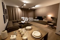Dispozice bytu: vstupní chodba (8, 6 m2), obývací pokoj s kuchyňským koutem (30, 7 m2), pokoj (14, 6 m2), pokoj (14, 4 m2), šatna (2, 2 m2), koupelna s sociální zařízení WC (6, 0 m2), sociální zařízení WC se sprchovým koutem (4, 2 m2), terasa (83, 9 m2)