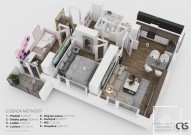 Byt obsahuje velký obývací pokoj s kuchyňským koutem, dvě ložnice, koupelnu, sociální zařízení WC, chodbu, lodžii a sklep. Fotografie vyobrazují aktuální stav bytu.