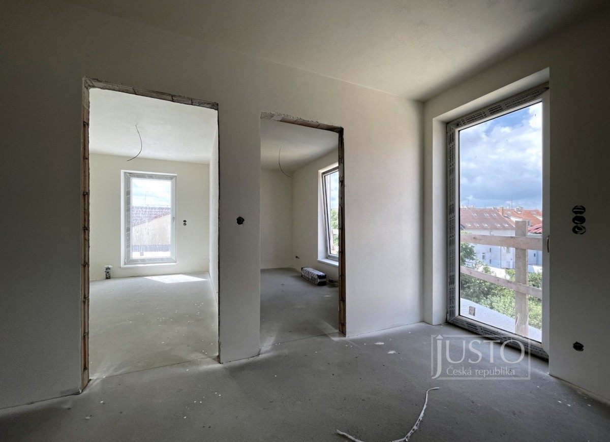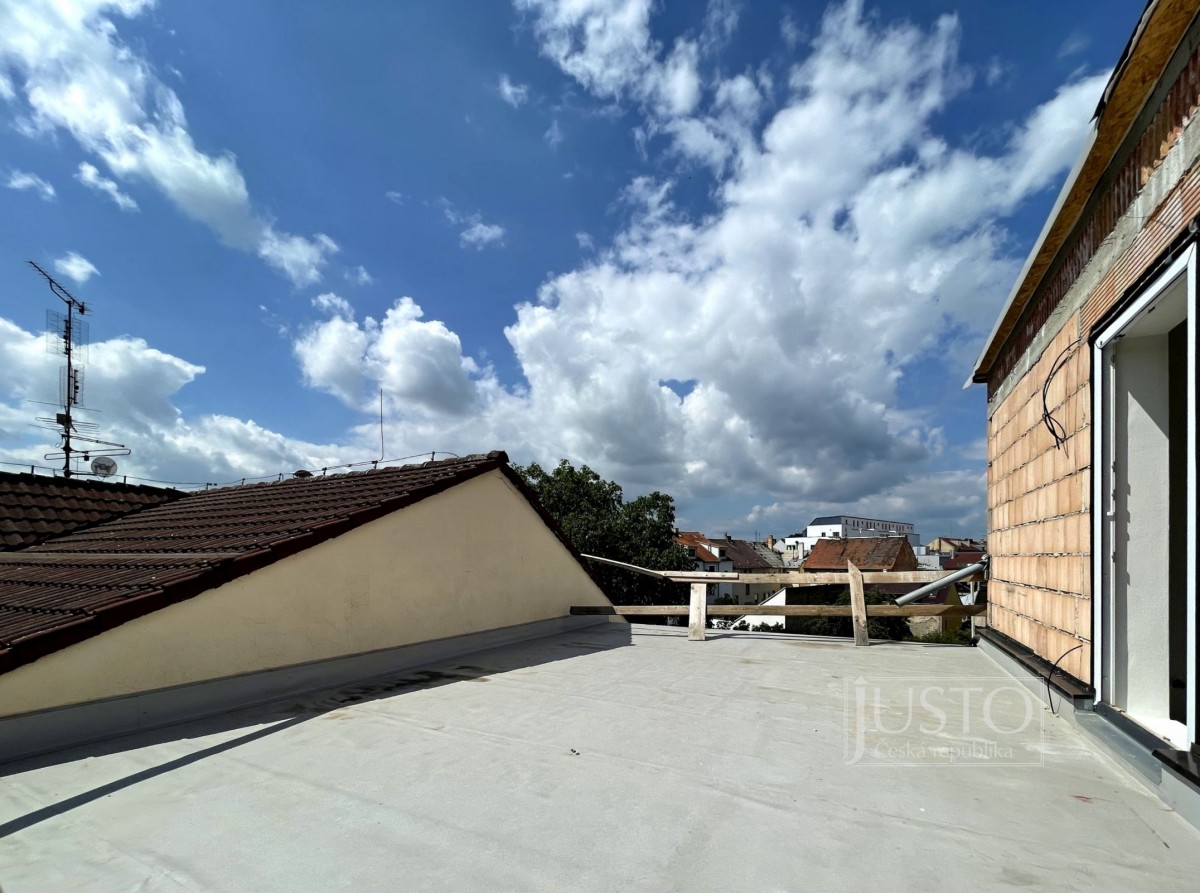 Náleží k němu samostatná sklepní kóje v přízemí o výměře cca 1 m², 1 parkovací stání (možnost přikoupit si druhé), které v „modrých zónách“ jistě oceníte, balkón o výměře cca 9 m² situovaný do klidného vnitrobloku sousedních domů a také terasa situovaná na jih s výměrou cca 40 m² – to vše již majitel zahrnul do kupní ceny, stejně tak podlahové krytiny (plovoucí podlaha), dveře a zárubně, zásuvky i zařízení sociálního zázemí (obklady, zařizovací předměty na sociální zařízení WC a v koupelně). Pro bližší představu o dispozici bytu Vám doporučujeme prohlédnout si fotogalerii. V ní naleznete nejen půdorys bytu, ale i orientační mapu s vyznačením polohy domu a též několik ilustračních fotek z výstavby – ty budeme v průběhu inzerce aktualizovat. Kolaudaci domu majitel plánuje na konec srpna letošního roku.