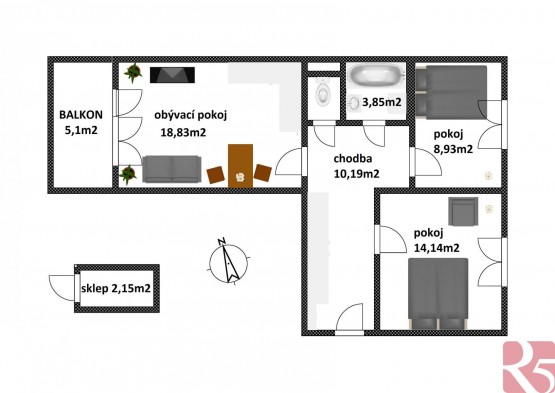 Vstupte do prostorné centrální chodby, která je vybavena šatní skříní a poskytuje dostatek místa pro uložení vašich věcí. Byt se skládá ze dvou samostatných ložnic o velikosti 8, 93 m2 a 14, 14 m2. Obývací pokoj o rozloze 18, 83 m2 je ideálním místem pro rodinné chvíle a relaxaci, a navíc z něj můžete vyjít na balkon o velikosti 5, 1 m2, kde si můžete vychutnat ranní kávu nebo večerní posezení s výhledem do zeleně.