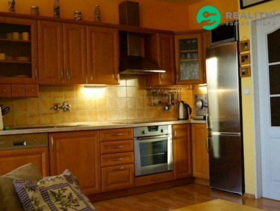 Byt je částečně zařízený k dispozici velká šatní skříň, kuchyňská linka se sklokeramickou varnou deskou, vestavěnou elektrickou troubou, myčkou, lednicí, mikrovlnkou a digestoří, dále jídelní stůl se 4 židlemi.
