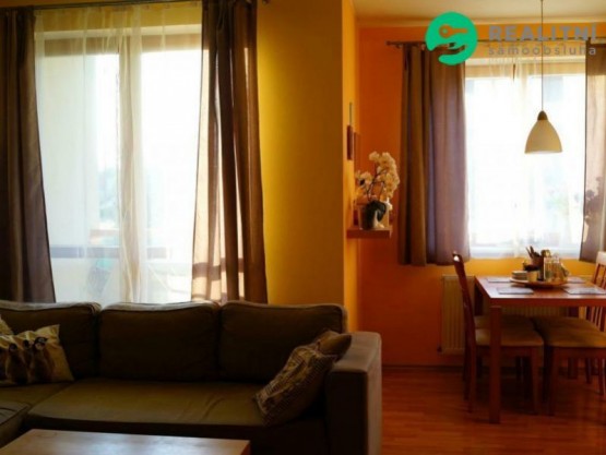 Byt je orientovaný severozápadně. Skládá se ze vstupní chodby, obývacího pokoje s kuchyňským koutem, dvou samostatných pokojů, koupelny s vanou, přípojky pračky, samostatné toalety a komory. V bytě je samostatný plynový kotel pro ohřev vody a topení. Dřevěná eurookna, plovoucí podlahy a dlažba. V domě je k dispozici kočárkárna. K bytu náleží parkovací místo za domem a předzahrádka s dětským pískovištěm.