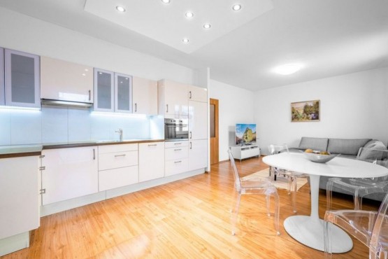 Cena bytové jednotky zahrnuje garážové stání o výměře 12 m2, veškeré vybavení uvedené ve fotodokumentaci.