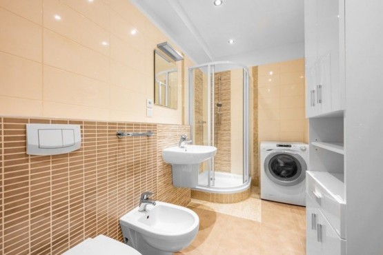 Kompletní vybavení zahrnuje novou kuchyňskou linku s indukcí a všemi elektrospotřebiči, jídelní posezení, TV, v ložnici manželská postel. Kompletně rekonstruovaná koupelna - dlažba, obklady, sprchový kout. Stavební technický stav bytu je velice dobrý, jednotka byla málo používaná a svým designem a užitnými vlastnostmi (nízké provozní náklady) splňuje nároky současného moderního bydlení v rychlém dosahu Prahy.