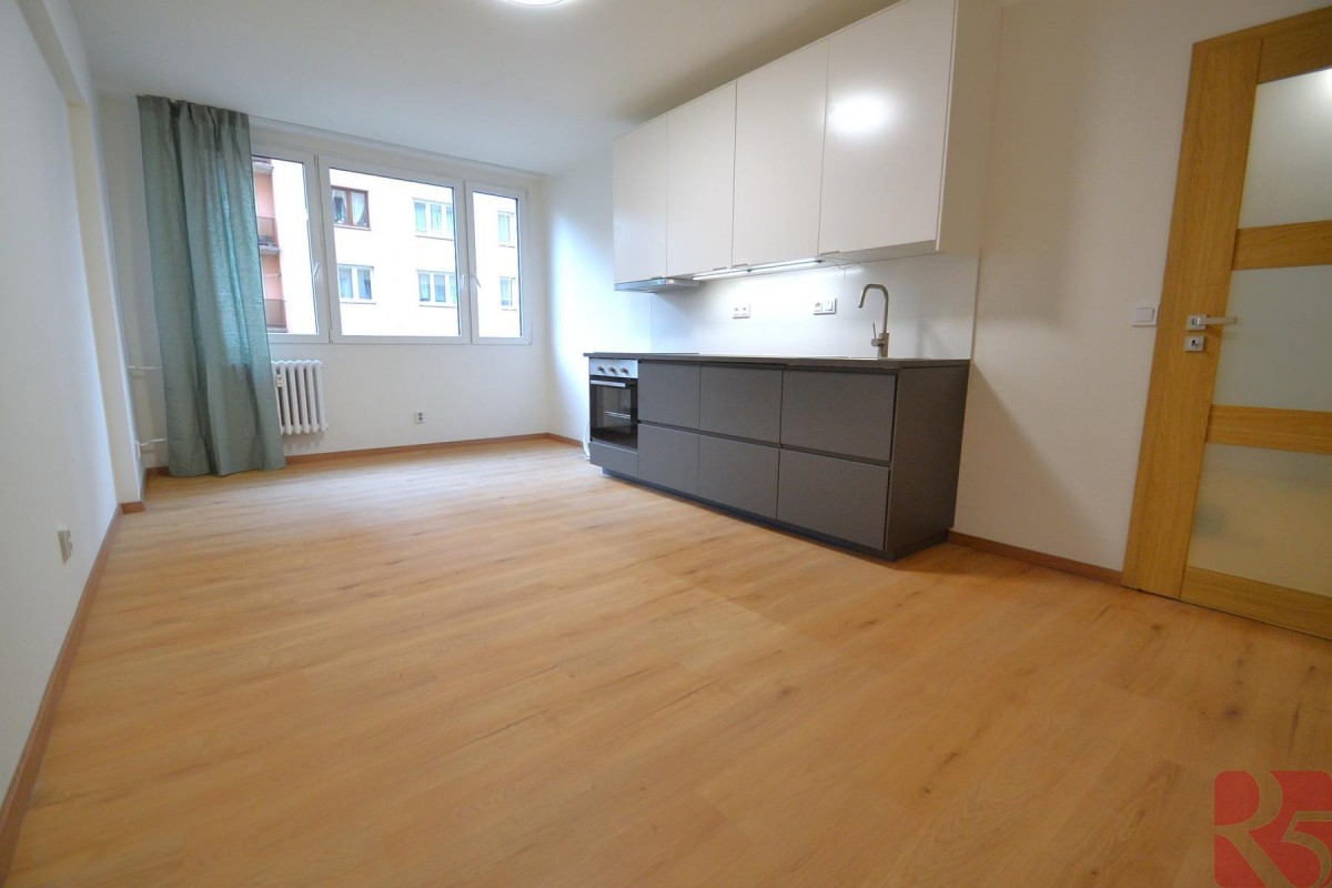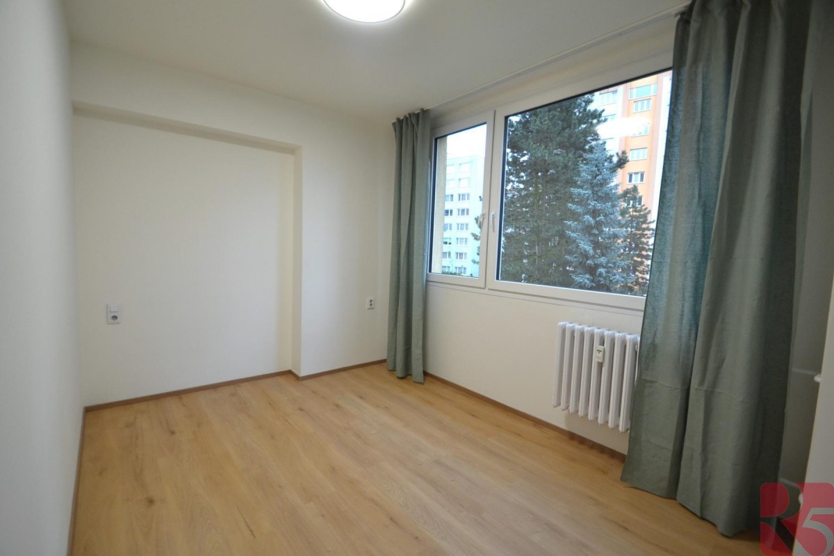 V obývacím pokoji instalována kuchyňská linka IKEA, šedobílá s vestavěnou myčkou, troubou a indukční varnou deskou na 400V umožní komfortní rychlé ekonomické vaření. Vedle kuchyňské linky místo na volně stojící lednici. Ložnice s výklenkem na šatní skříň a prostorný druhý (dětský) pokoj. Světlé prosklené dveře v dekoru dub.