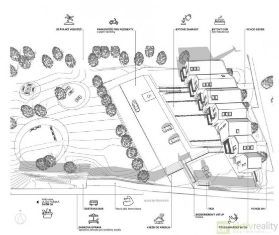 V ceně bytu je jedno parkovací stání. Samozřejmostí je zahrada, kompletně osazená zelení, hotové záhonky, okrasné dřeviny a maximálně upravené plochy pro Váš nový domov.