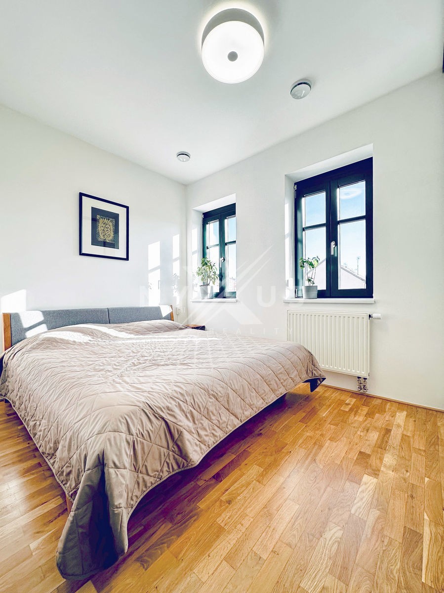 V bytě proběhla kompletní rekonstrukce včetně výměny oken. Jelikož jedna strana oken směřuje do ulice, byly vybaveny zvukově izolačními trojskly. Na oknech směřující do ulice jsou nainstalovány předokenní rolety. Na oknech směřující do dvora jsou izolační trojskla. Byt je vybaven rekuperační jednotkou, která Vám zajistí optimální vnitřní klima.