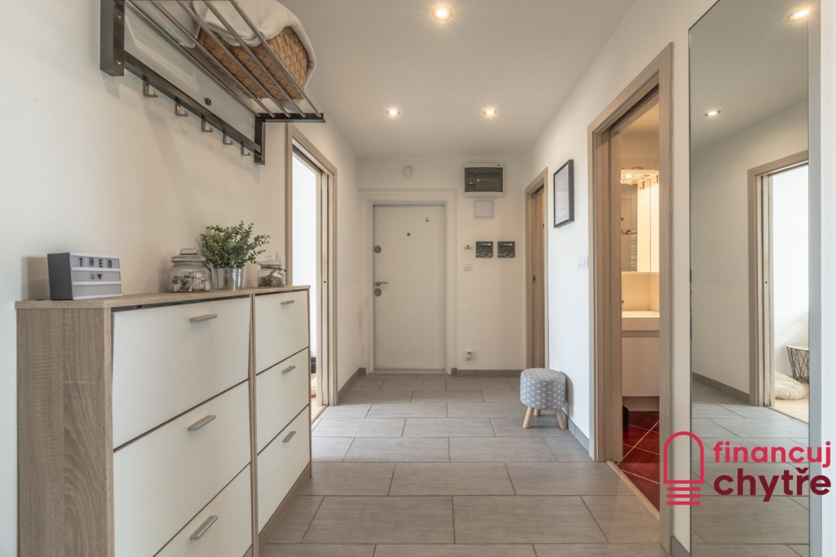 Byt. jednotka je pr...osvětlená s výbornou dispozicí. Z centrální chodby bytu vcházíme do všech pokojů i do koupelny a toalety. Po pravé straně nahlédneme do dětského pokoje a ložnice, uprostřed malá šatna a po levé straně se nám ukáže velkorysý prostor obývacího pokoje spojeného s kuchyňskou částí. Hned u vchodu bytu se nabízí komora - ideální úložní prostor.