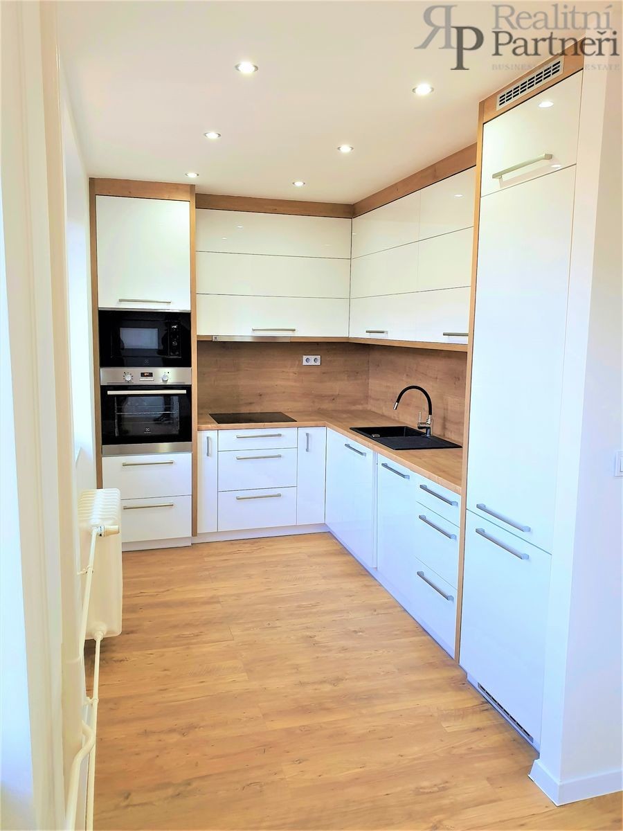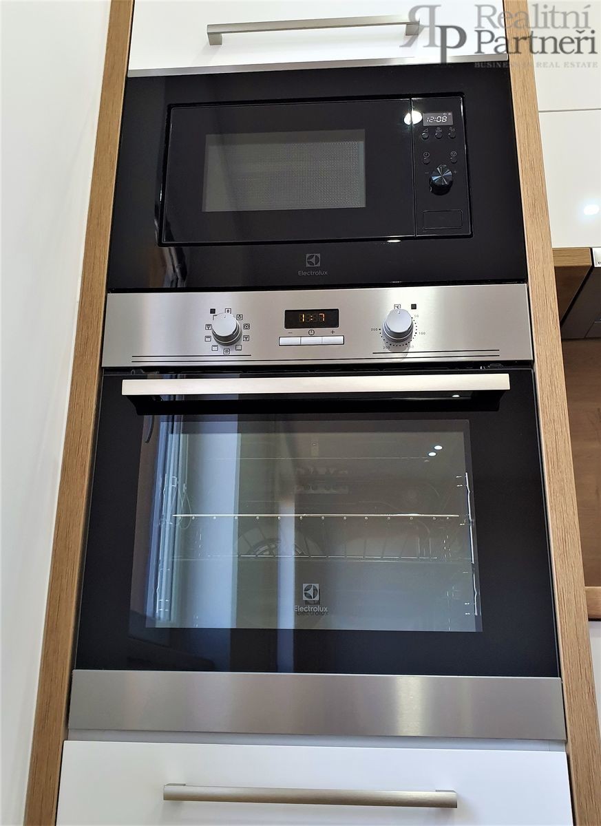 V kuchyni je nová kuchyňská linka na míru, pojezdy Bloom, dvířka vysoký lesk. Kuchyňská linka je včetně vestavěných spotřebičů: vestavná trouba, vestavná mikrovlnná trouba, recirkulační odsavač par a varná indukční deska, vše značky elektrolux. Všechny spotřebiče jsou v plné záruce 2 roky. Všechny doklady od zakoupených spotřebičů a dalších věcí, dostanete při předání bytu.