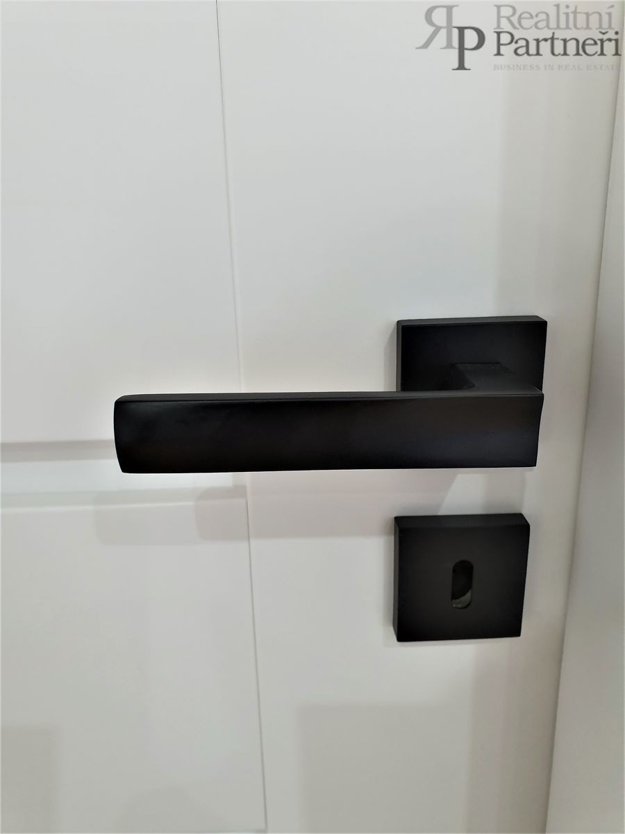 Dále jsme se zabývali, jak vyrovnat celý byt do roviny. Celý postup vyrovnání podlah Vám rádi sdělíme na osobní prohlídce. Pro informaci uvedeme, že vyrovnání podlah probíhalo vytrháním původních parket, penetrace podkladu, vyrovnání podkladu do roviny, dále položen kvalitní 5mm podkladu hobra a finální vrstva plovoucí podlaha 8mm. Dále jsou také v bytě nainstalovány prémiové dveře včetně zárubní, značky Porta. Dále jsme vyměnili vstupní dveře, které jsou nově bílé, aby bylo v bytě vše slazeno do jednotných barevných tonů.
