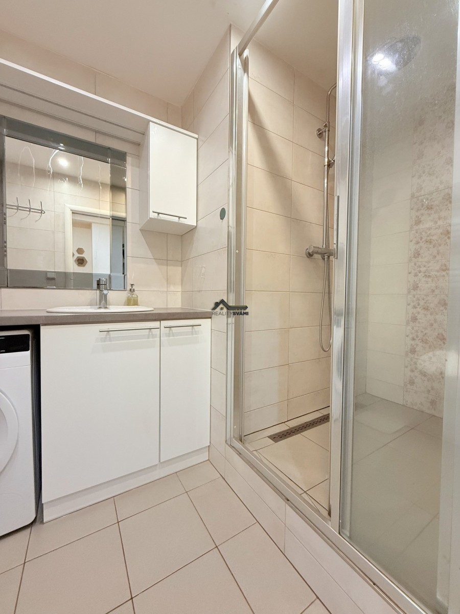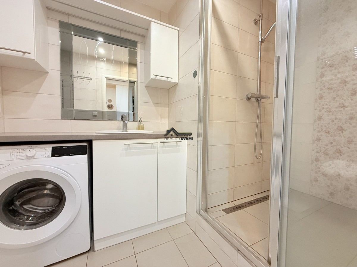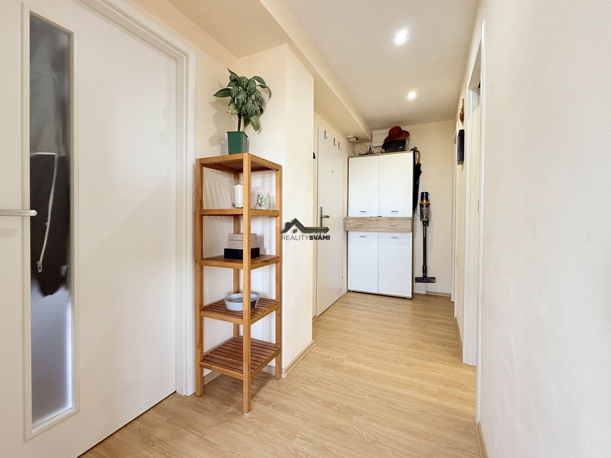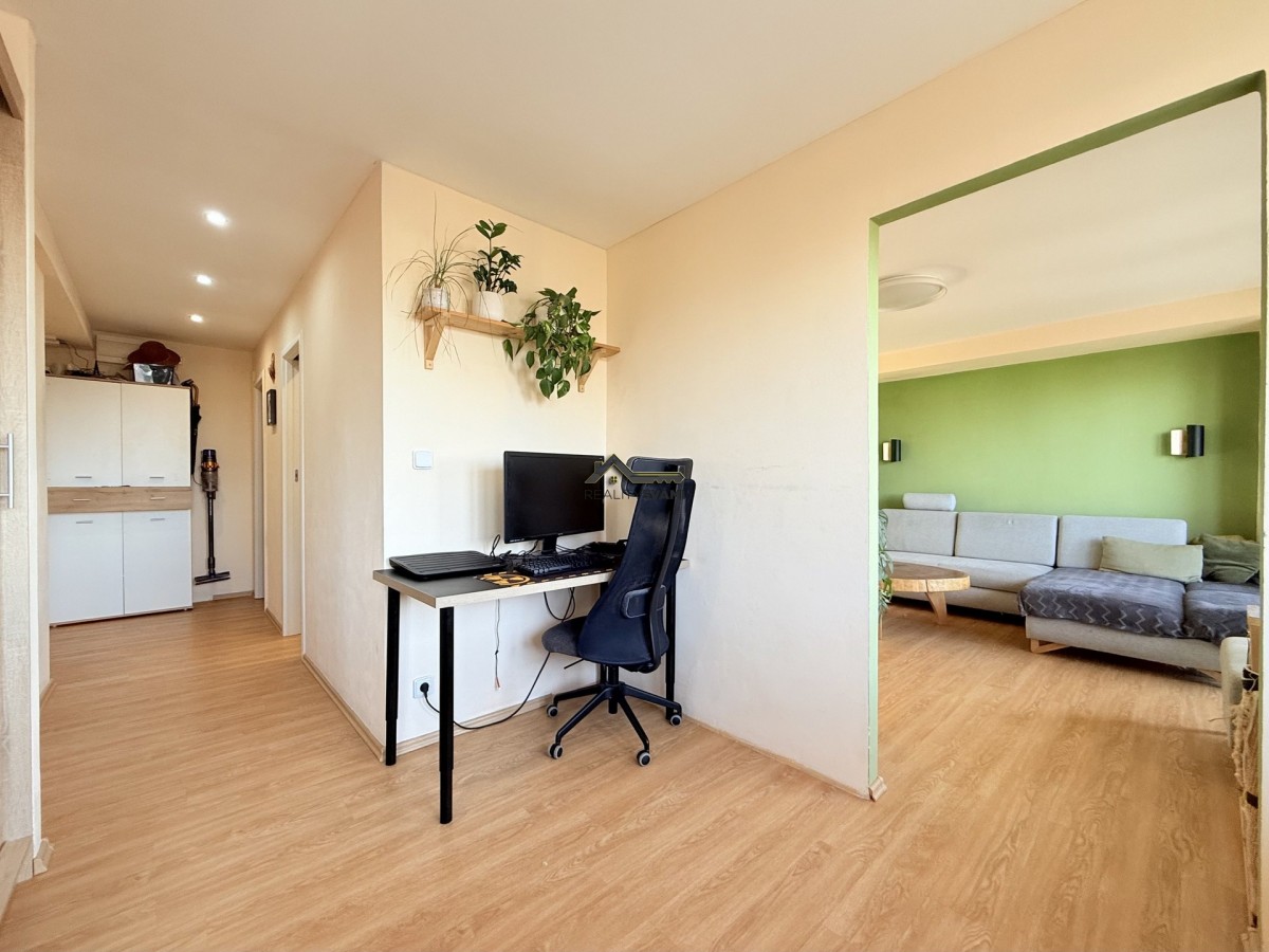 Byt je umístěný v desátém patře panelového d...omu po revitalizaci. Prošel před několika lety kompletní rekonstrukcí, při níž bylo změněn celkový prostor bytu, upraveny příčky, vyzděno bytové jádro. Dveře bytu byly umístěny ve většině případů do pouzder, čímž byl zvětšený obytný prostor. Dále byla měněna kuchyňská linka, která má vestavěné spotřebiče, včetně myčky nádobí. V koupelně nechybí velkorysý prostor sprchového koutu, ale našlo se místo i na pračku, nebo žebříkové topení, které díky elektrickému přívodu můžete používat i v létě. Nezapomnělo se na rozvody elektřiny a vody, plovoucí podlahy s kombinací dlažby na toaletě a v koupelně, snížení stropů, pomocí sádrokartonu v předsíni a nechybí i nové omítky. K bytu jsou 2 balkóny, kdy jeden z nich má téměř 8m2 a také sklepní kóje.