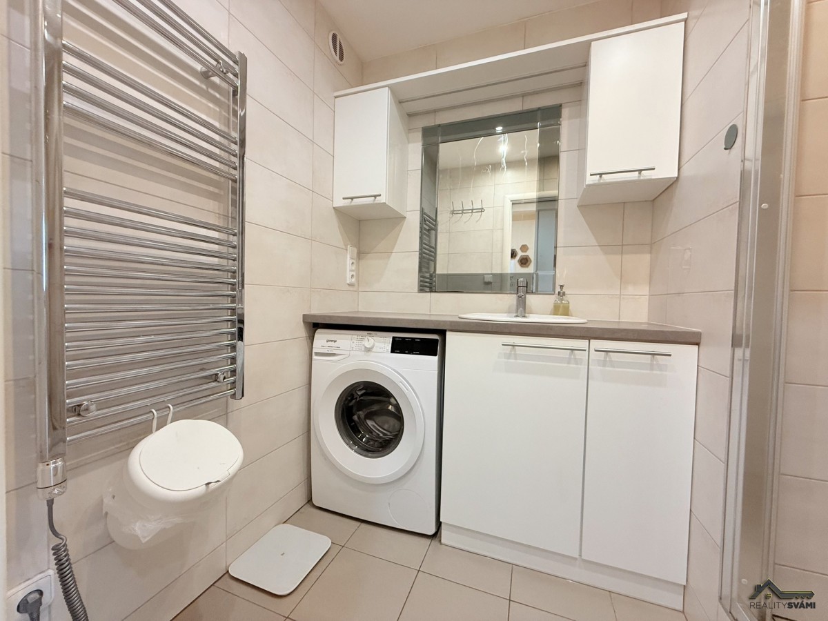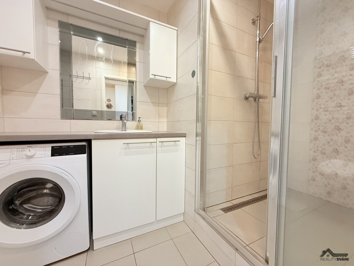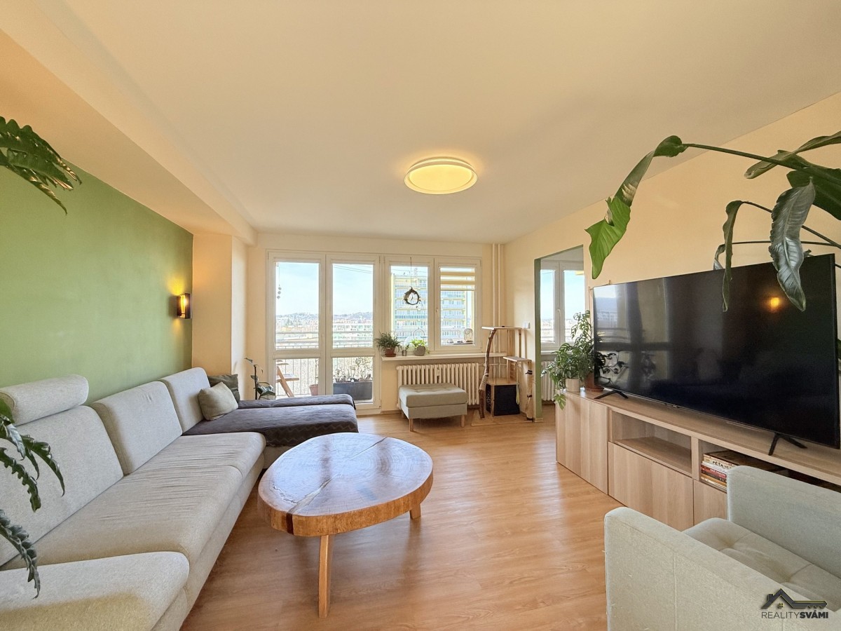 Rozdělení bytu bylo při rekonstrukci změněno..., a to tak, že vznikly 2 samostatné pokoje, jako je ložnice a obývací pokoj, který je navíc spojený s kuchyňským koutem a jeden z pokojů je použitý jako průchozí pracovna. Byt je umístěný v desátém patře panelového domu po revitalizaci. Prošel před několika lety kompletní rekonstrukcí, při níž bylo změněn celkový prostor bytu, upraveny příčky, vyzděno bytové jádro. Dveře bytu byly umístěny ve většině případů do pouzder, čímž byl zvětšený obytný prostor. Dále byla měněna kuchyňská linka, která má vestavěné spotřebiče, včetně myčky nádobí. V koupelně nechybí velkorysý prostor sprchového koutu, ale našlo se místo i na pračku, nebo žebříkové topení, které díky elektrickému přívodu můžete používat i v létě. Nezapomnělo se na rozvody elektřiny a vody, plovoucí podlahy s kombinací dlažby na toaletě a v koupelně, snížení stropů, pomocí sádrokartonu v předsíni a nechybí i nové omítky. K bytu jsou 2 balkóny, kdy jeden z nich má téměř 8m2 a také sklepní kóje.