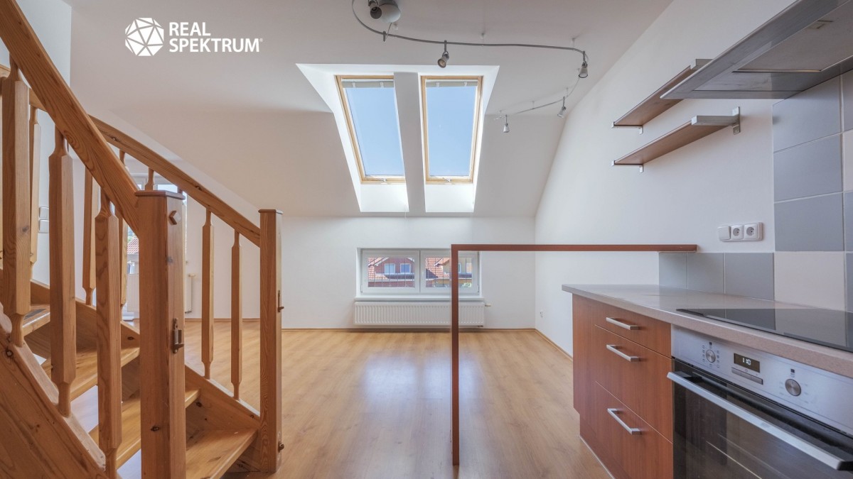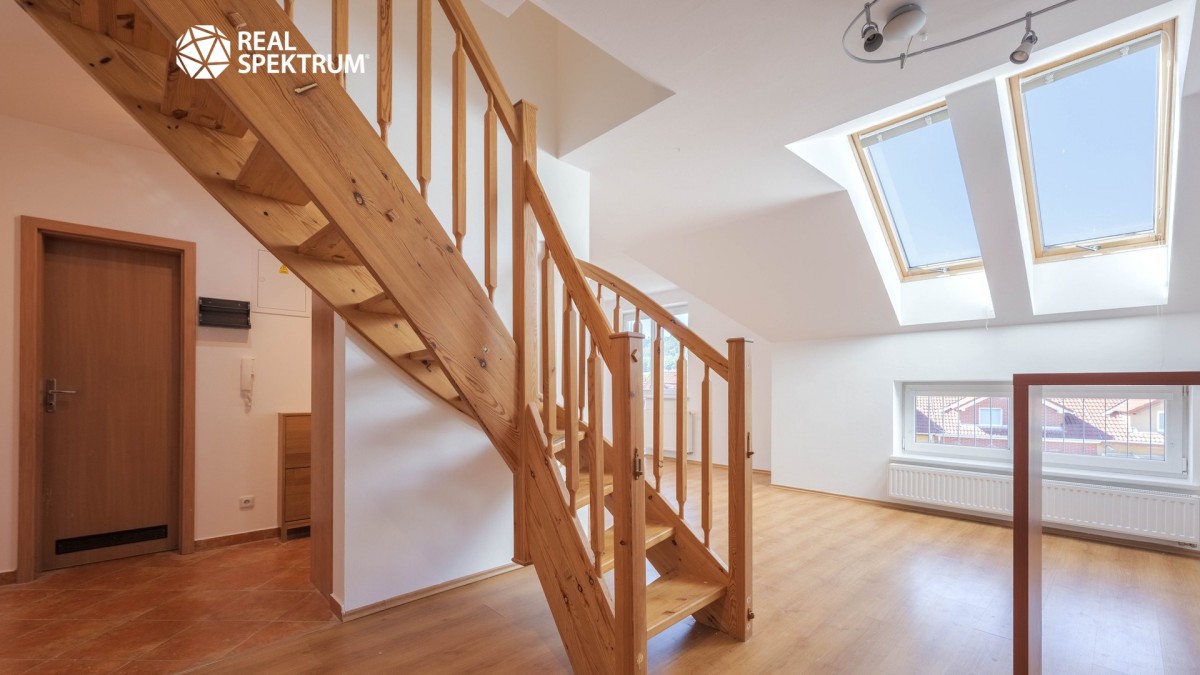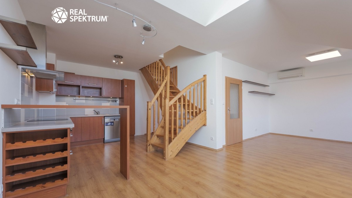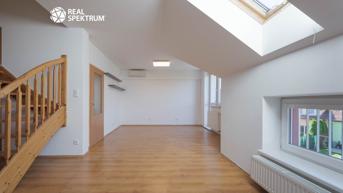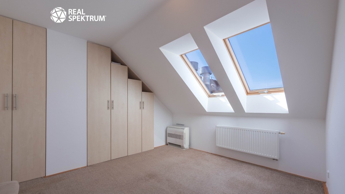 Byt má velice příjemnou orientaci a mnoho denního světla díky střešním oknům v obou podlažích. Je vybaven klimatizací, která zpříjemní nejen letní dny. Ohřev vody a vytápění zajišťuje moderní plynový kotel. K bytu náleží sklepní kóje v přízemí domu.