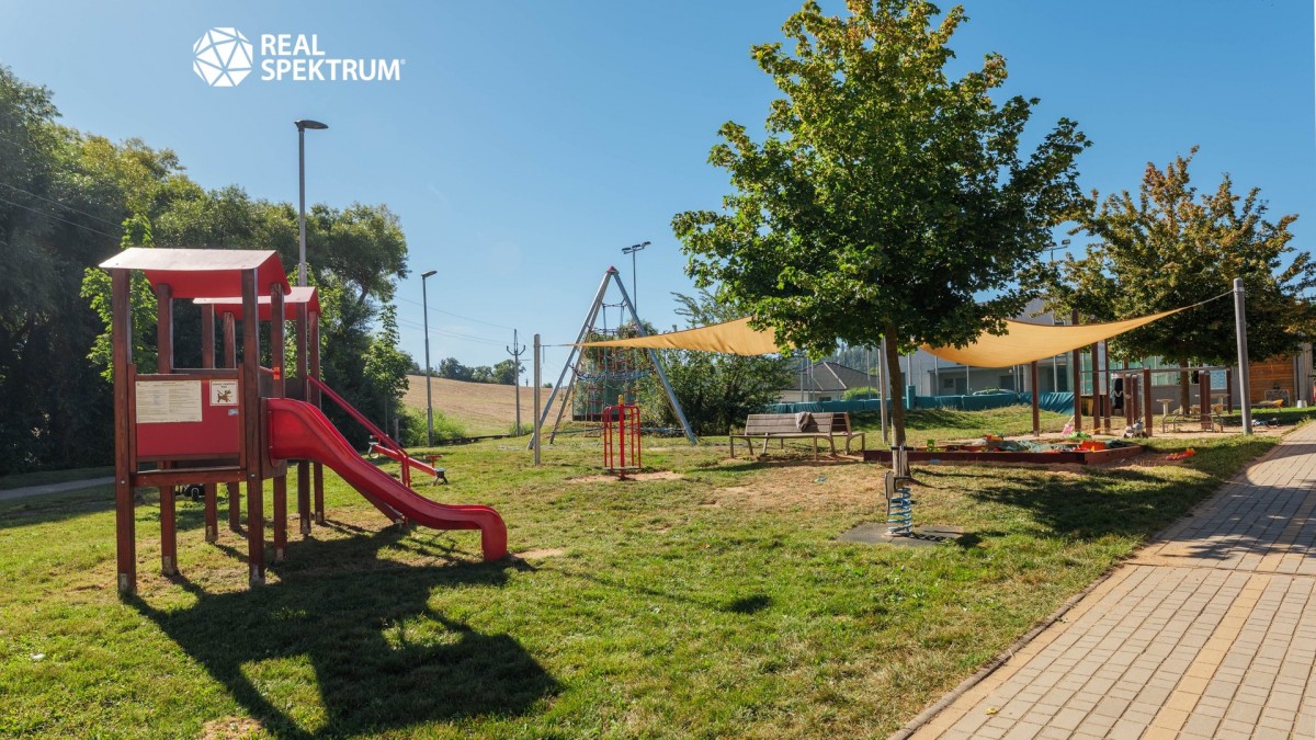 Bezprostředně u domu najdete dvě dětská hřiště, venkovní posilovací zónu a multifunkční sportoviště. Milovníci přírody ocení snadný přístup do lesa a do přírodního parku Šiberná — ideální místo pro procházky, běh nebo cyklovýlety. V pěší dostupnosti je kompletní občanská vybavenost.