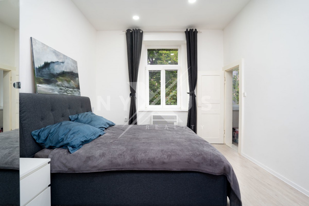 Byt je situován v klidné ulici, za rohem jsou stanice tramvají i autobusů, deset minut pěšky je Bulovka. Pokud se vydáte na druhou stranu, za pár minut můžete relaxovat v Přírodní památce Prosecké skály. Školky, školy, obchody i vše další, co potřebujete pro pohodlný život, je v pěším dosahu.