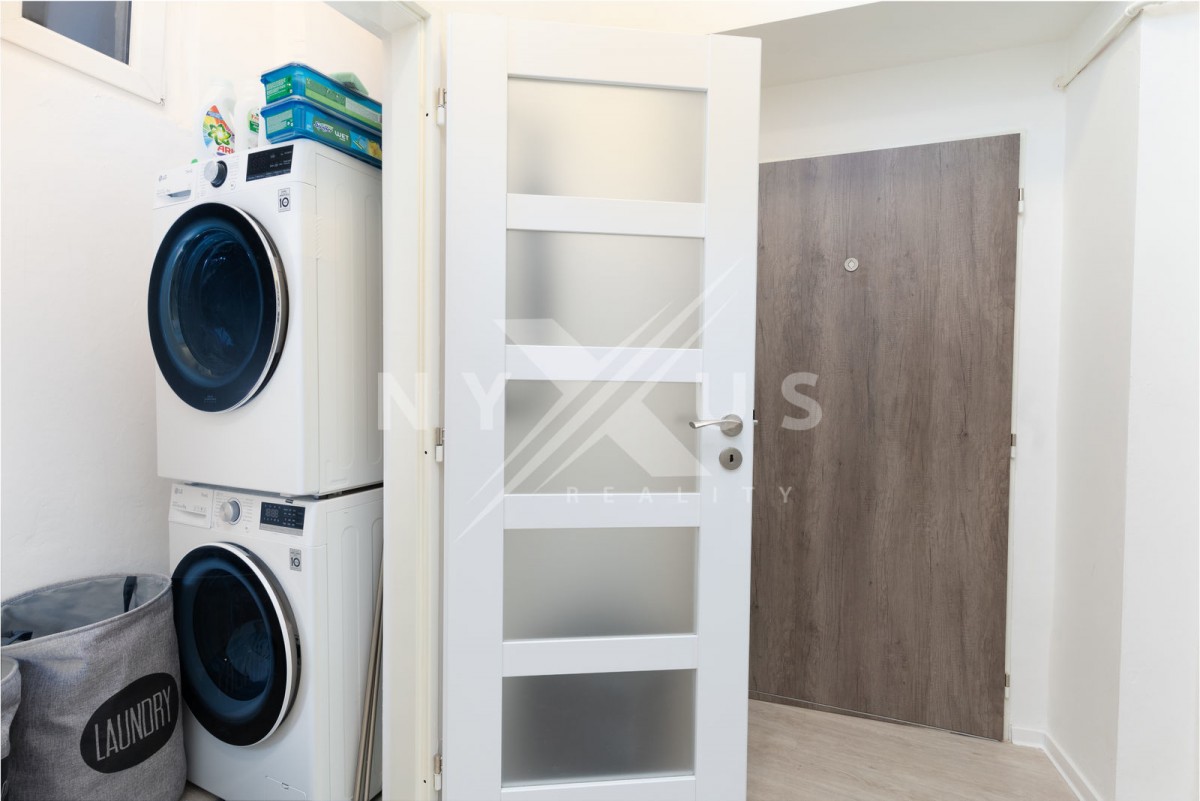 Byt prošel před rokem kompletní, velice kvalitní rekonstrukcí. Ta zahrnovala změnu dispozice podle aktuálních standardů, nové rozvody plynu a vody, nové zpevněné podlahy a protihlukovou izolaci stropů, bodové osvětlení pokojů. Všechny pokoje dostaly nové vybavení – nábytek i doplňky, stejně tak nová je i kuchyňská linka.