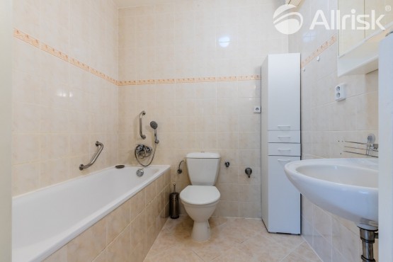V bytě jsou dvě koupelny, obě společné s sociální zařízení WC. V jedné je vana, ve druhé sprchový kout.