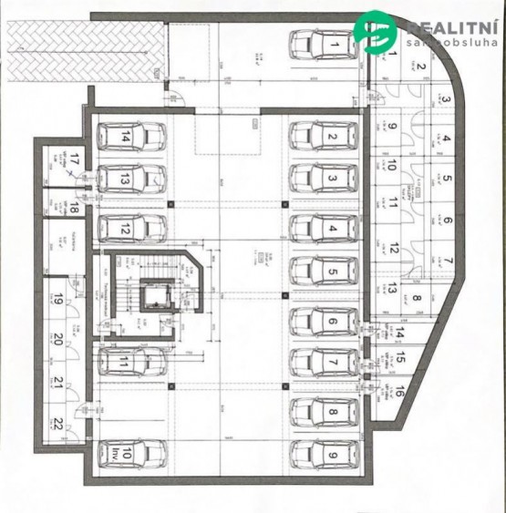 1 krát garážové stání č. 13 (přímo vedle sklepu a výtahu)