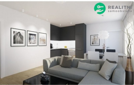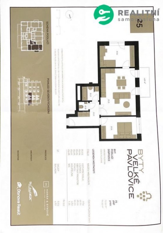 velikost: 3+kk, 63m2 (kuchyň+jídelna+obývací místnost 26m2, ložnice 12m2, pokoj 12m2, koupelna 4m2, sociální zařízení WC 1, 5m2, vstupní hala 7, 5m2)