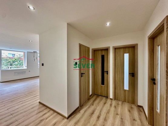 Nemovitosti SEVER vám zprostředkují prodej bytu s dispozicí 3+kk s lodžií v družstevním vlastnictví v Mostě, ul. K. J. Erbena. Byt s celkovou plochou 77m2 se nach...ází ve druhém patře panelového domu včetně výtahu, situovaný v klidné části města. Dispozice bytu je po kompletní rekonstrukci a skládá se z předsíně, společně řešené koupelny s toaletou, šatny, samostatných vstupů do obývacího pokoje s lodžií propojeného kuchyňskou částí s jídelním prostorem a dvou ložnic. Rekonstrukce bytu zahrnuje elektroinstalaci, štuky, plovoucí podlahy, snížené stropy s bodovým osvětlením, sociální zařízení ve zděném jádru s prostorným sprchovým koutem v moderním keramickém obkladu, kuchyňskou linku s vestavěnými spotřebiči, interiérové dveře s obložkami, bezpečnostní vstupní dveře, rozvody vody a odpadů. K bytu náleží komora na patře a sklepní kóje. Byt je ihned volný k užívání. Dům, ve kterém se byt nalézá, je po revitalizaci. V okolí domu je dostatek zeleně. Veškerá občanská vybavenost k dispozici v docházkové vzdálenosti. V případě zájmu zajistíme optimální variantu financování za zvýhodněných podmínek na tento byt.