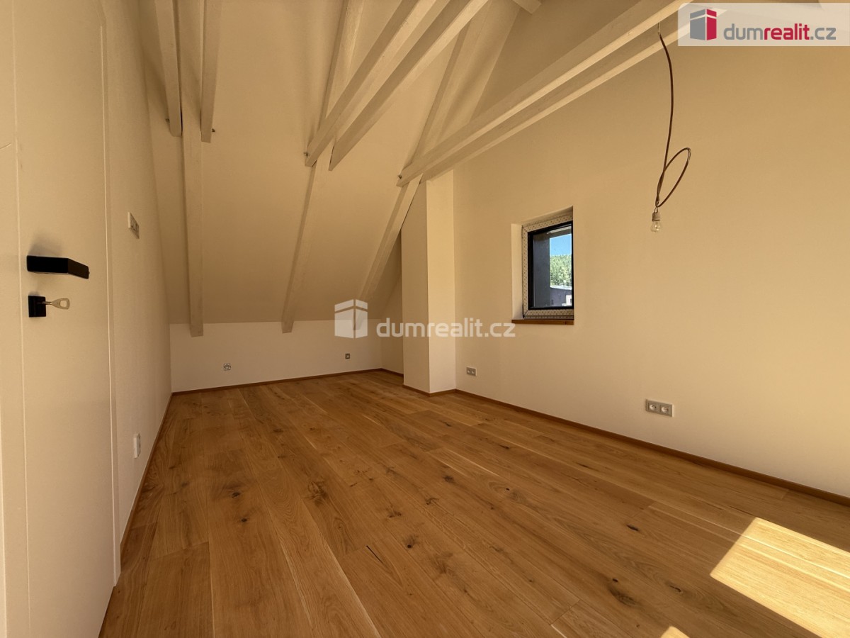 Horní patro: velkorysá podkrovní ložnice se spoustou prostoru a soukromí.