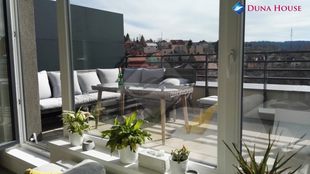 Nabízený byt se nachází v nejvyšším sedmém patře skeletového domu včetně výtahu z roku 2017. Díky tomuto umístění poskytuje příležitost pro nerušené a pohodlné bydlení, jelikož je na tomto patře jediný. Na sedmém patře se nachází pouze rozsáhlá společná terasa, na které je možné posedět s rodinou a přáteli, případně využít gril. K bytu náleží také dvě parkovací stání přímo v domě a poměrně velké sklep (cirka 8 m²) poskytující dostatek úložného prostoru. K dispozici je také sdílená kolárna.