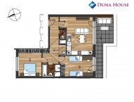 Tento byt má celkovou výměr...u 79 m² a disponuje velkou terasou (16 m²). Naleznete zde prostorný obývací pokoj s kuchyňským koutem orientovaný na jih se vstupem na terasu. Dále se zde nachází dva oddělené pokoje, jeden orientován na jih s druhým přístupem na zmíněnou terasu, druhý orientován na sever. Byt dále disponuje koupelnou se sprchovým koutem a samostatným sociální zařízení WC. Do všech místností se vstupuje z předsíně. Mimo vybavenou kuchyni a koupelnu Vám v bytě budou k dispozici vestavěné skříně v obou pokojích a na chodbě. Podlahy jsou plovoucí laminátové, okna plastová dvojsklenná. Topení i ohřev vody zajišťuje plynová kotelna přímo v domě.