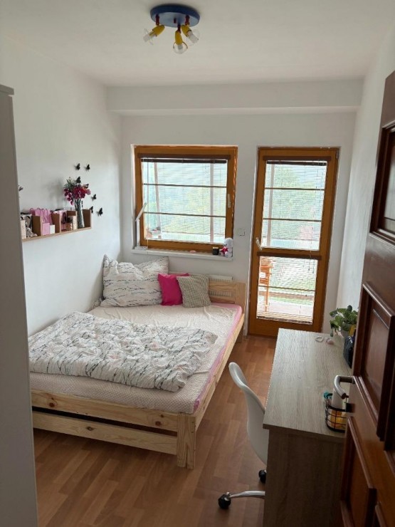 Nabízíme k prodeji pěkný a útulný byt 3+kk s prostornou zimní zahradou v klidné a příjemné lokalitě města Sušice v 2. patře nízkoenergetického domu kolaudovaného v roce 2003. So...učástí bytové jednotky jsou garážové stání pro 2 automobily o velikosti 28m2 a sklep o velikosti 4m2 umístěné v přízemí Bytového domu. V domě se nachází pouze 9 bytových jednotek, které nabízí bydlení zájemcům toužícím zkombinovat výhody kompletní občanské vybavenosti města Sušice a moc hezké Šumavské přírody v blízkém okolí. Podlahová plocha bytu včetně zimní zahrady je 75m2, Nemovitost nabízí dostatek úložného prostoru, dispozičně 3 neprůchozí pokoje se samostatnými vstupy na zimní zahradu, kuchyňský kout, předsíň, chodba, komora, 2 šatny, spíž, samostatné sociální zařízení WC a koupelna s vanou. Zimní zahrada nabízí moc hezké výhledy do okolní krajiny a plně uspokojí zájemce o klidné rodinné bydlení poblíž přírody. Vytápění bytu je zajištěno plynovým kotlem umístěným v přízemí bytového domu a v nemovitosti je umístěna také rekuperační jednotka, která je rozvedena do všech místností.