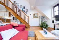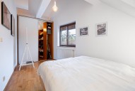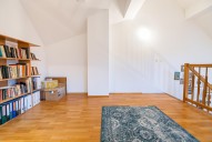 Díky vysokým stropům, velkému množství světla a otevřené galerii působí byt mimořádně vzdušně a prostorně.