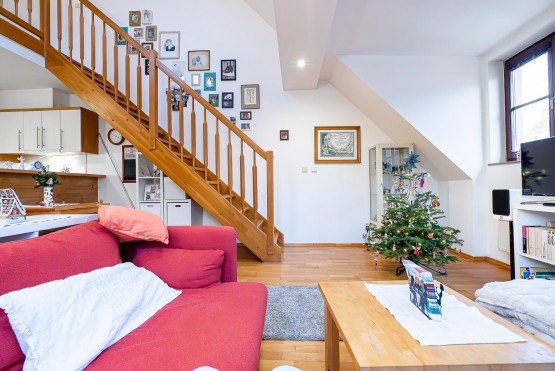 Nabízíme Vám světlý a elegantní mezonetový byt o dispozici 3+kk o podlahové ploše 81, 4 m2, situovaný přímo v centru Berouna - nám. J. Barranda.