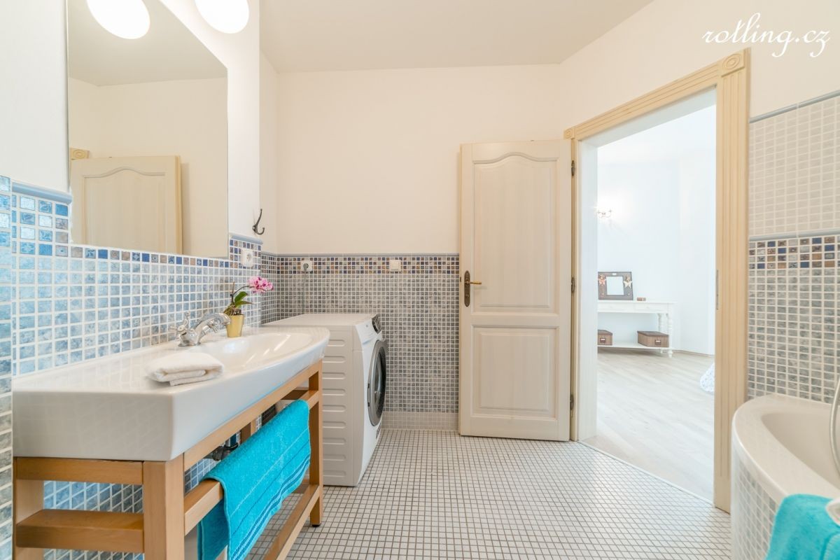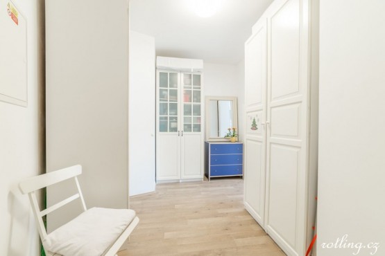 Vybavení bytu zahrnuje moderní kuchyňskou linku s italskými obklady a spotřebiči, originální zárubně interiérových dveří, laminátové podlahy, v koupelně mosaiková dlažba, bezpečnostní vstupní dveře Next.
