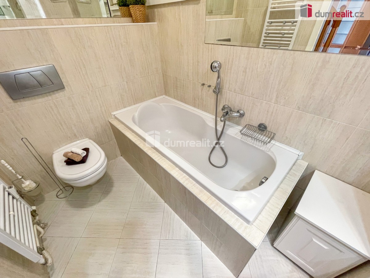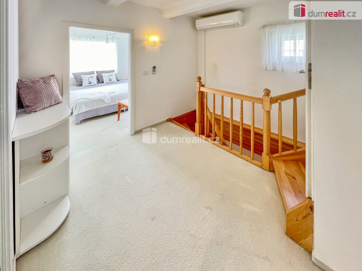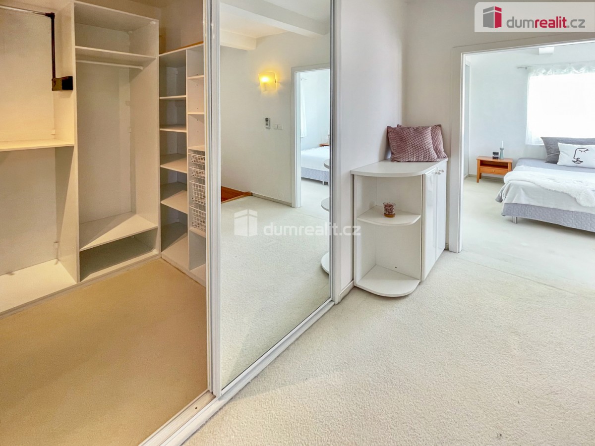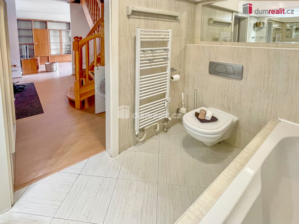 Dvě ložnice (nebo ložnice a pracovna, je to na vás) jsou chytře oddělené v horním patře bytu, kde kromě prostorné chodby najdete i šatnu a druhou toaletu. Soukromí zajištěno, ranní fronty minimalizovány. V létě oceníte klimatizaci, v zimě funkční ústřední topení s kotelnou v domě s vyměněnými topnými tělesy, které se instalovali při kompletní rekonstrukci bytu před několika lety.